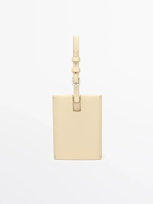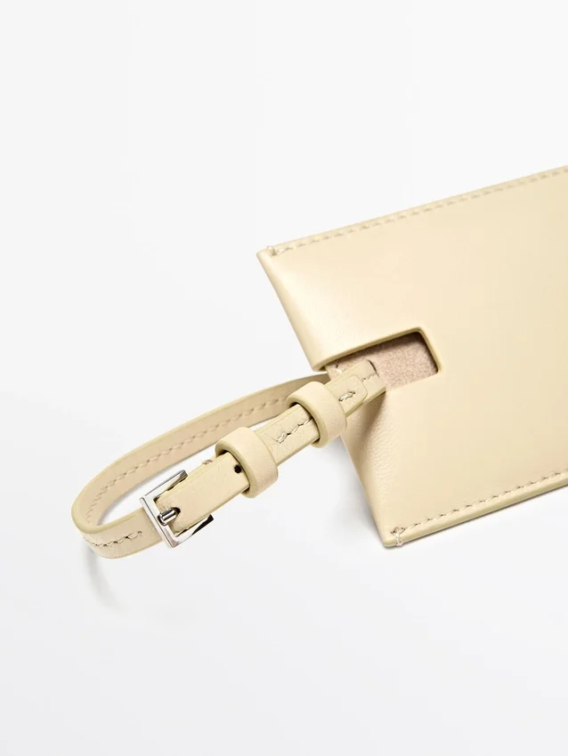 Reislabel gemaakt van schapenleer met nappa-leer afwerking.