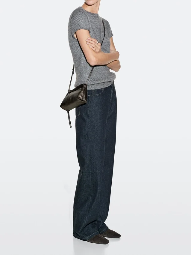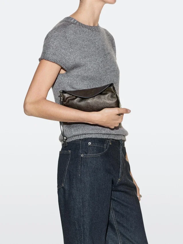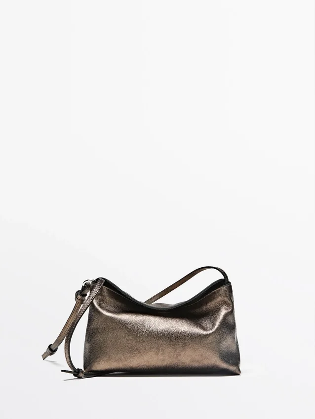 Handtas gemaakt van rundleer. Dunne schouderriem. Klep met verborgen magnetische sluiting.