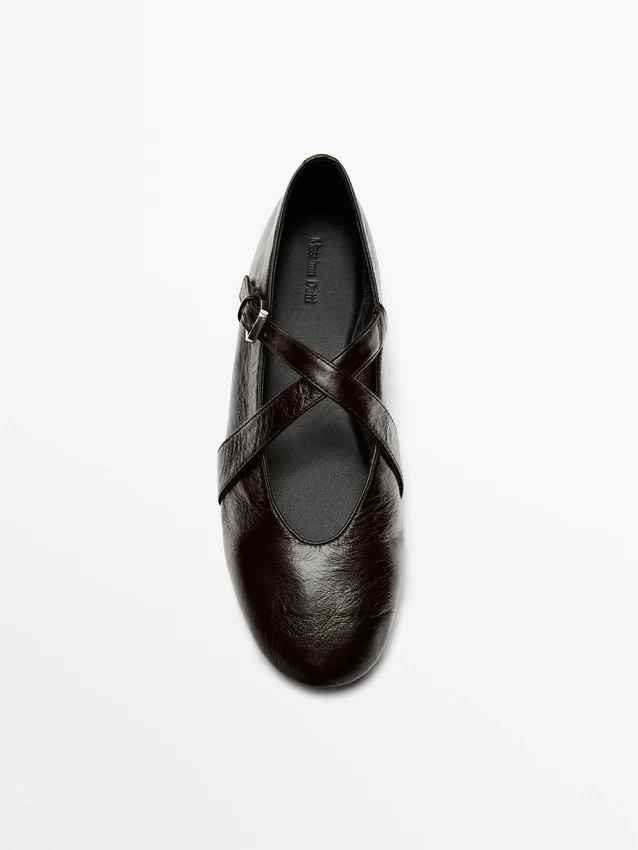 Ballerina’s met gekruiste bandjes en gesp
