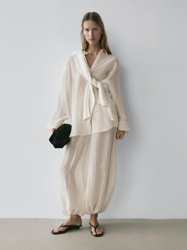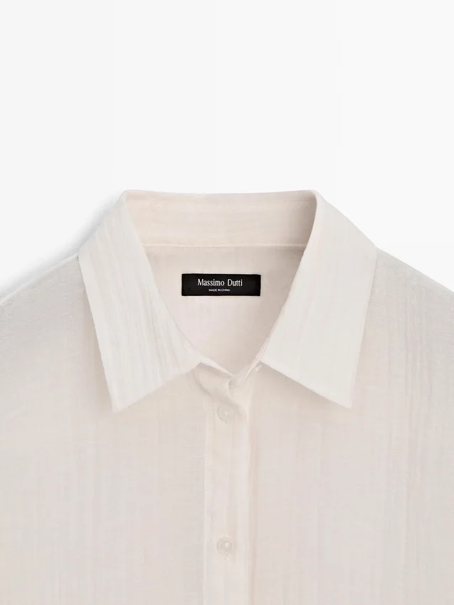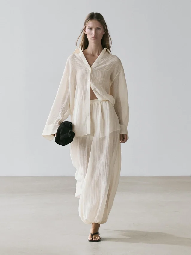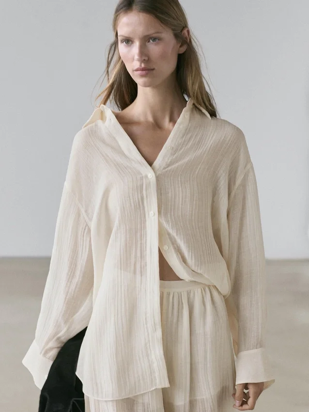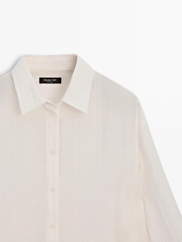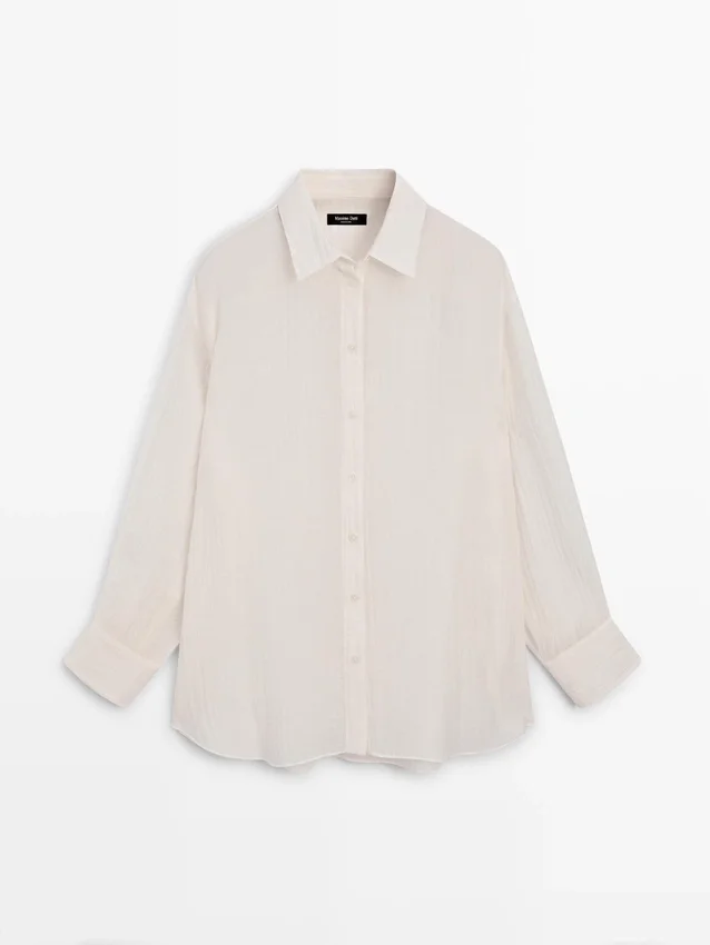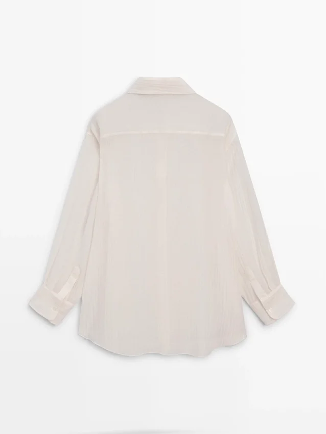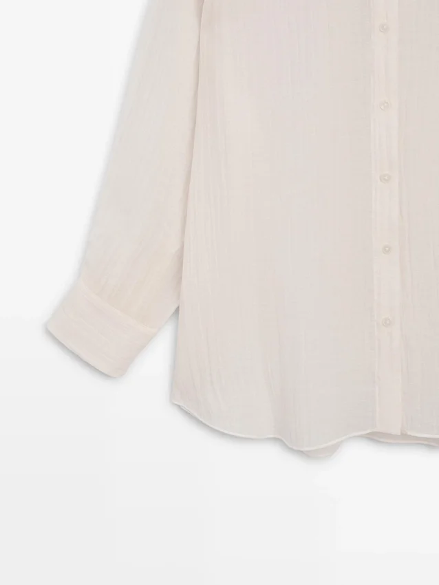 Soepelvallend overhemd. Lange mouwen met manchetten met knopen. Overhemdkraag. Voorkant met knopen. Extra fijne, semi-transparante stof. Bijpassend kledingstuk beschikbaar.