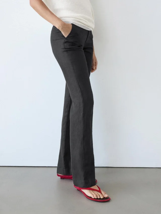 100% linnen broek met uitlopende pijpen