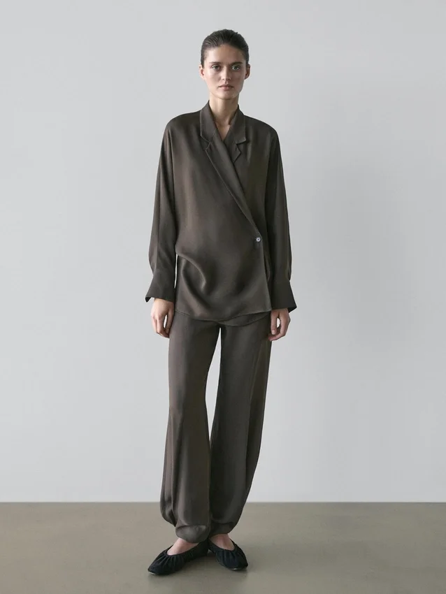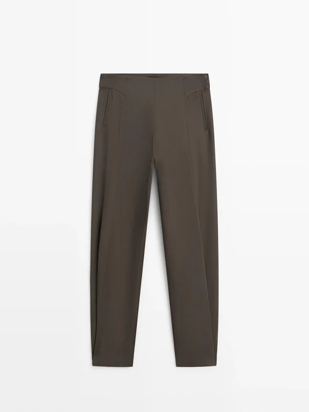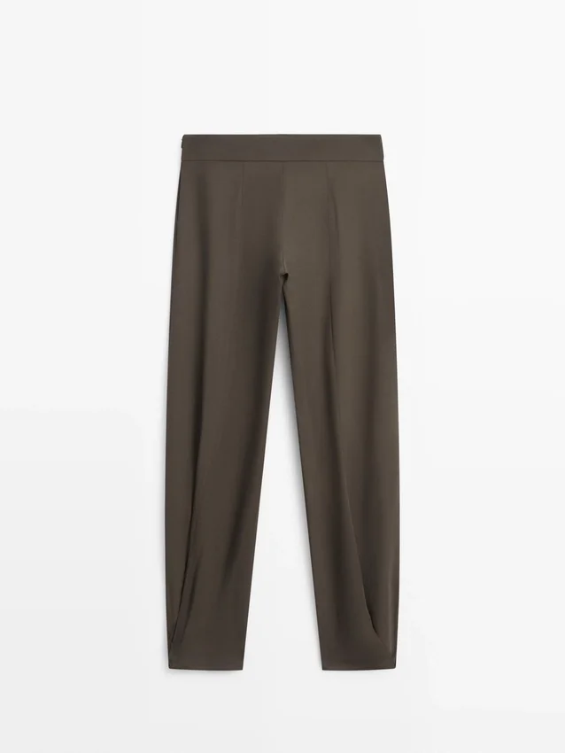 Sarouel-broek: losvallend silhouet, wijd beenvolume en enkellengte. Ritssluiting aan de zijkant. Twee zijzakken. Plooidetails aan de voorkant. Bijpassend kledingstuk beschikbaar.