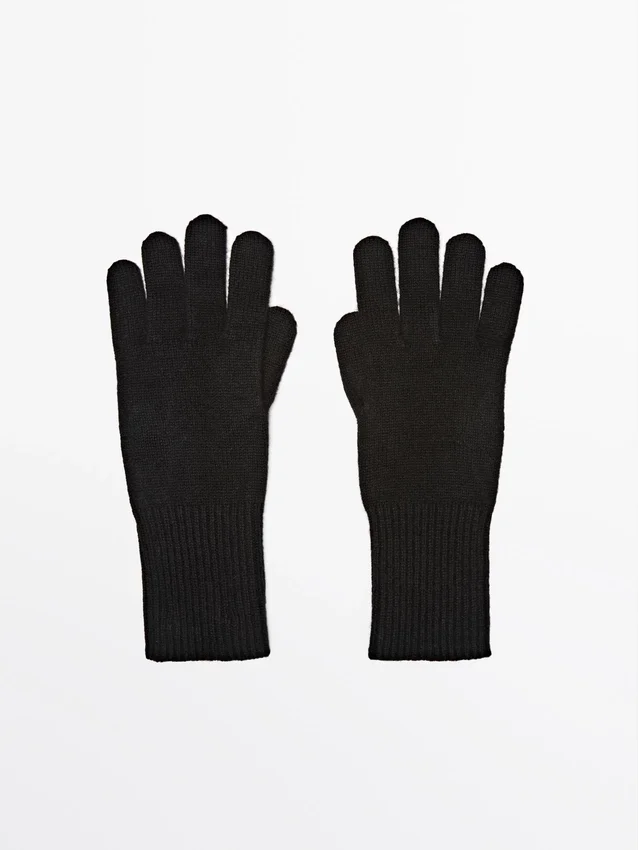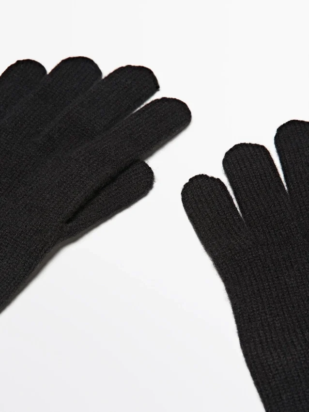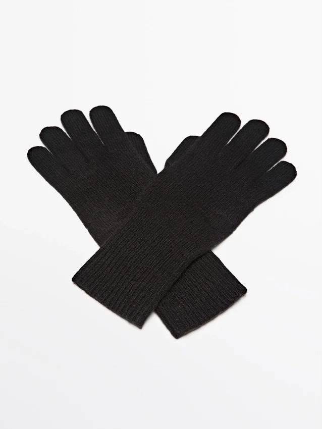 Handschoenen gemaakt van gebreide stof van een wolmix. Geribde boorden.