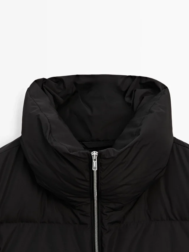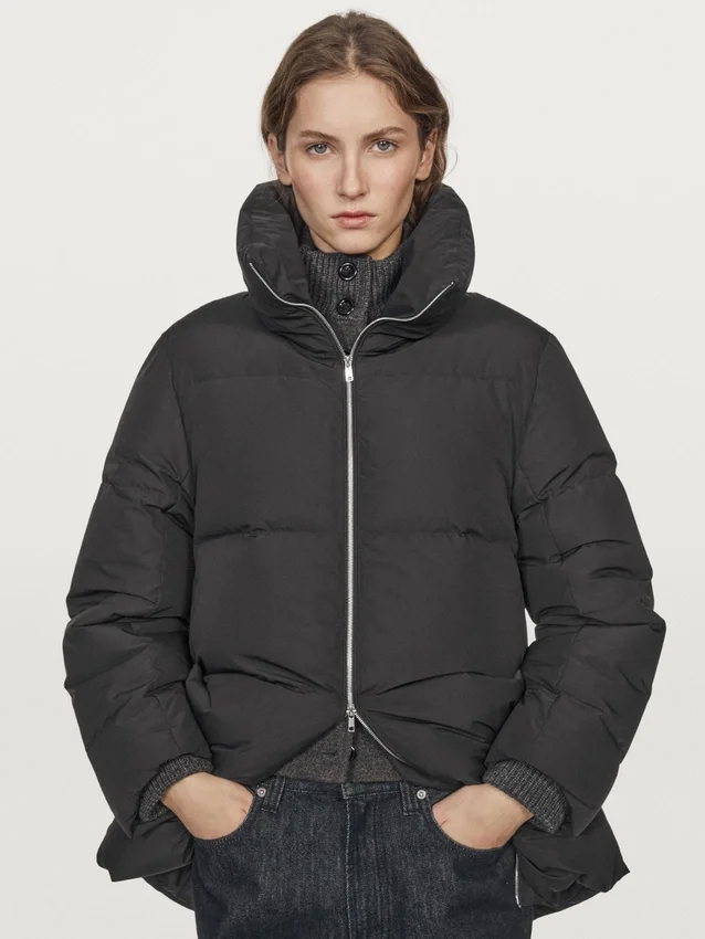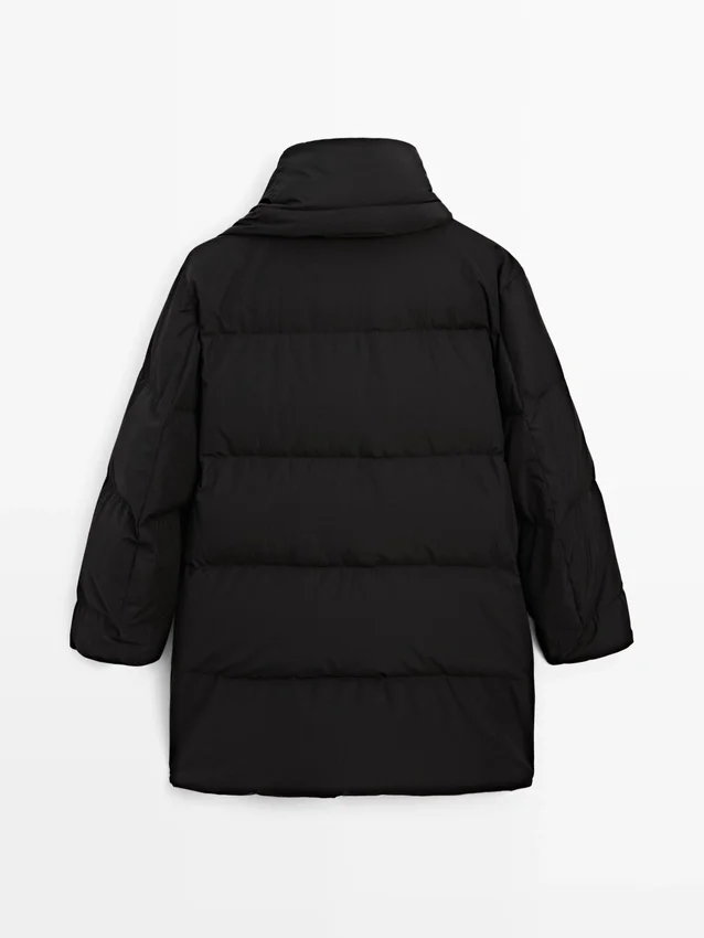 Gewatteerd jack met vulling van 80% dons en 20% veren. Lange mouwen. Met tweewegritssluiting. Hoge kraag. Twee zijzakken. Sjaals bij de hals. Waterafstotende stof.Samenstelling