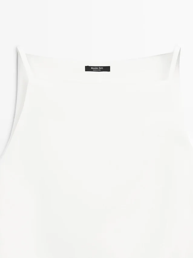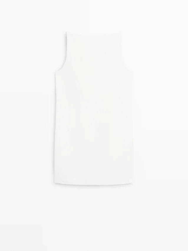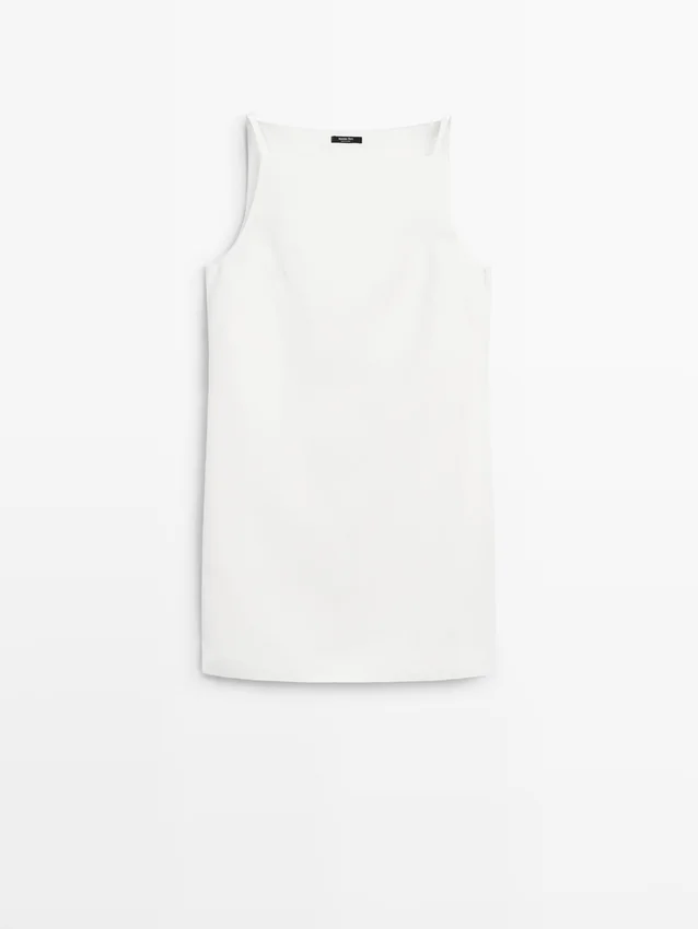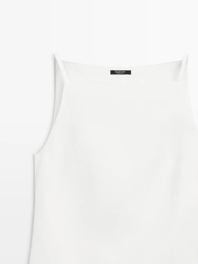 Rechte halslijn. Bandjes. Ritssluiting aan de zijkant. Gevoerd.