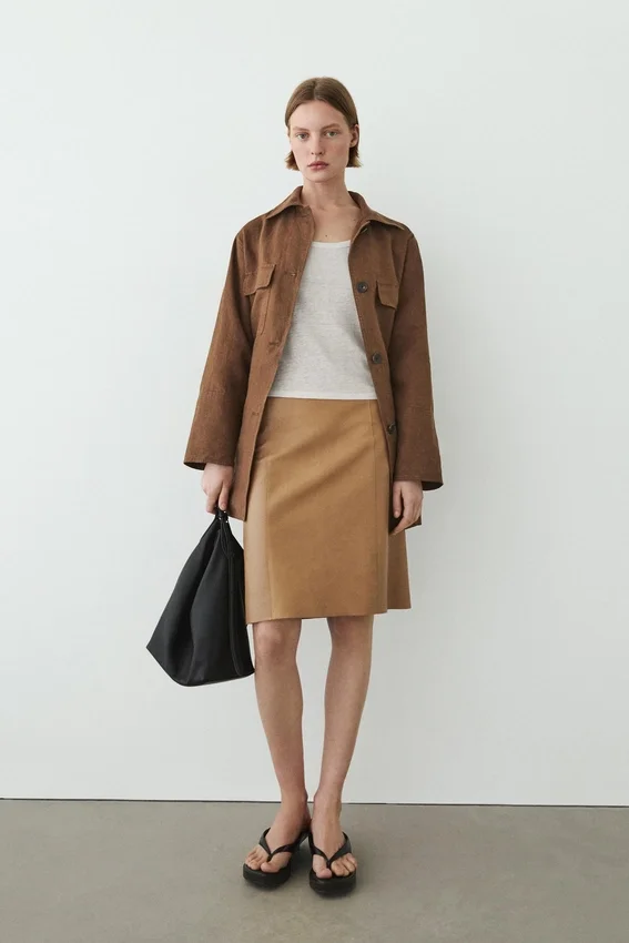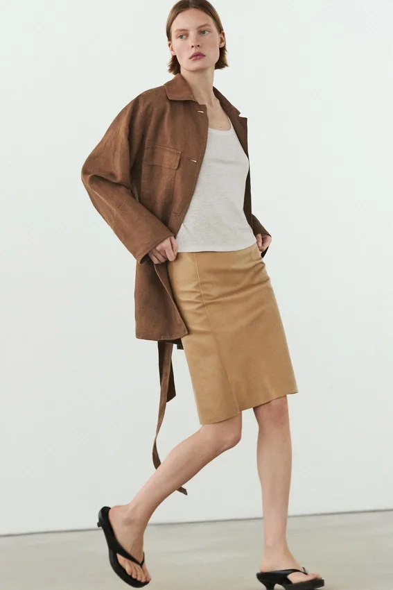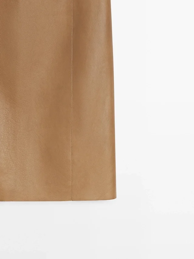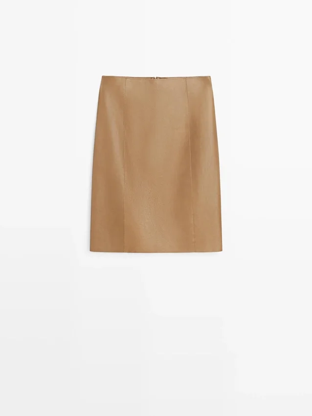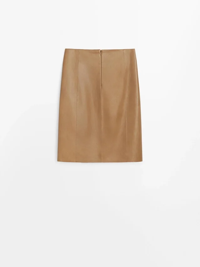 Rok van schapenleer met nappalederen afwerking. Ritssluiting aan de achterkant. Gevoerd.