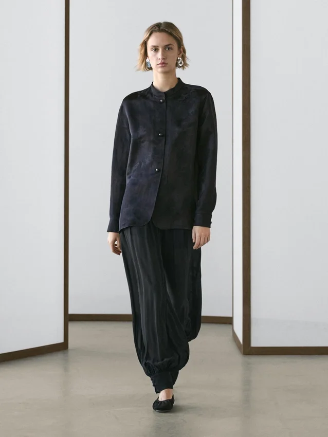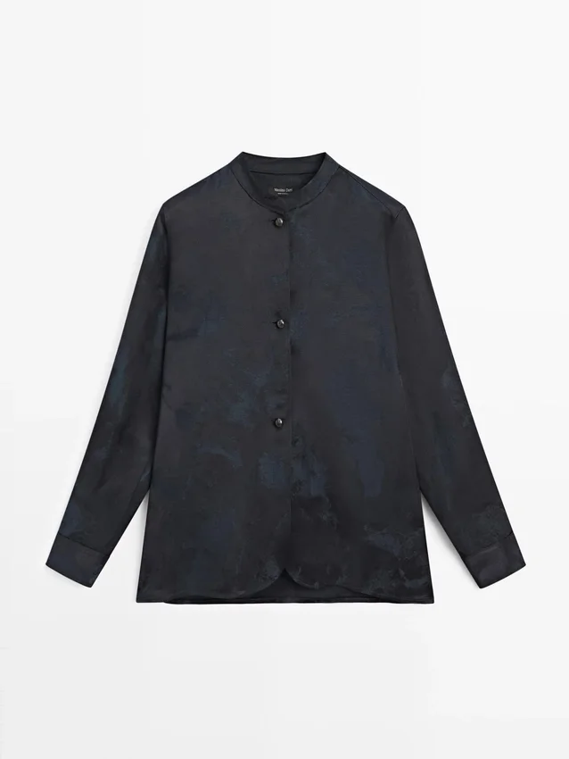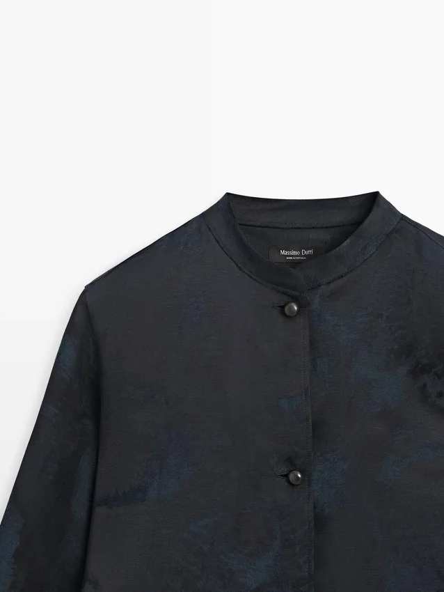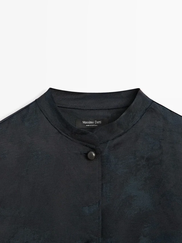 Soepelvallend overhemd van een linnenmix. Lange mouwen met knoopsluiting aan de manchetten. Opstaande kraag. Jacquardprint. Knoopsluiting aan de voorkant.
