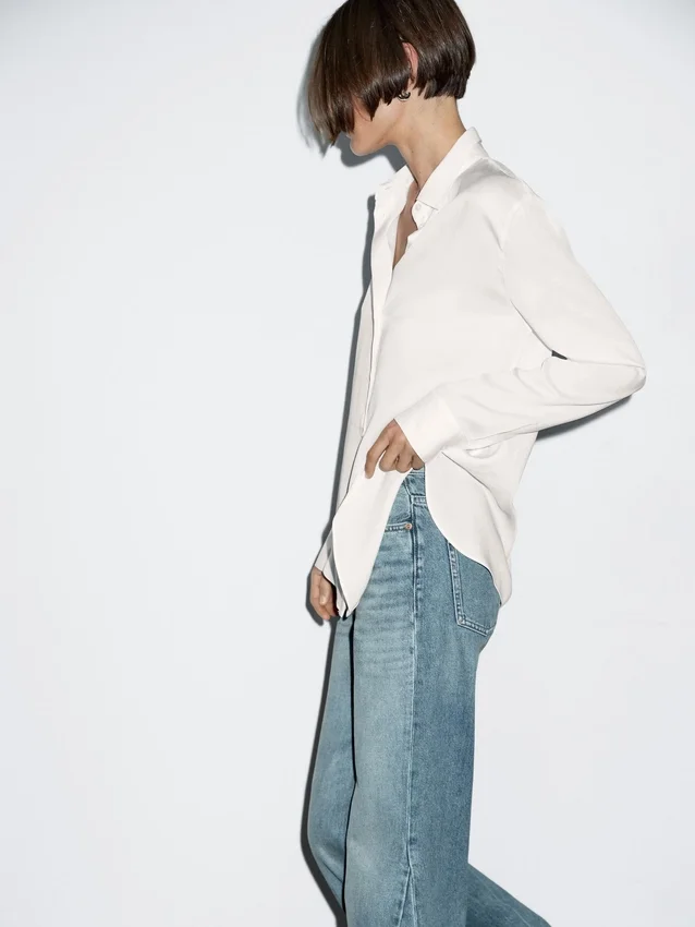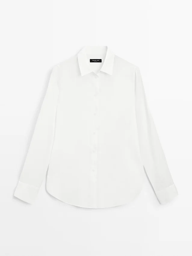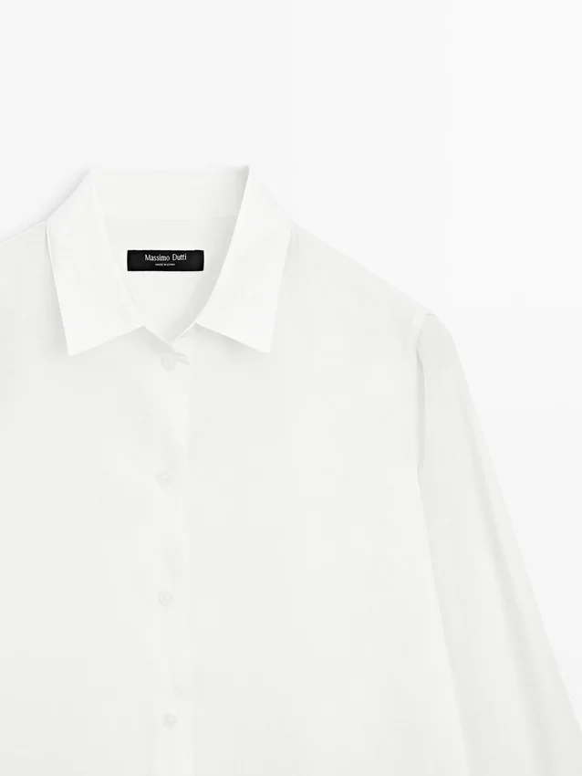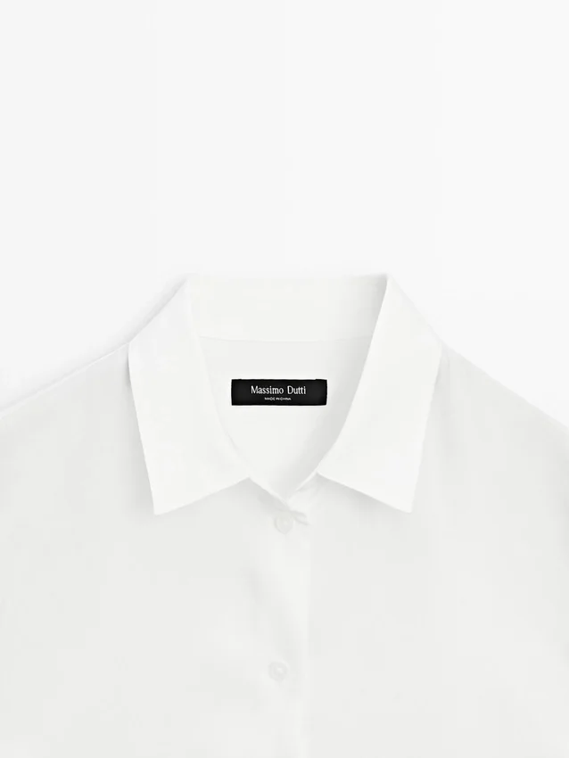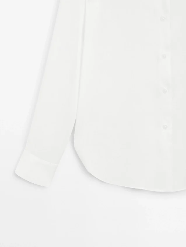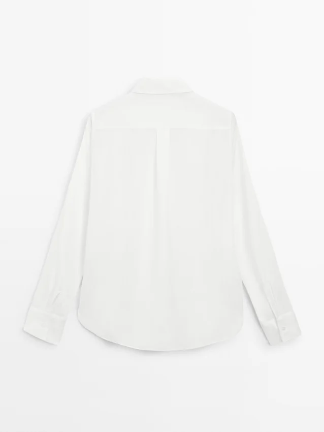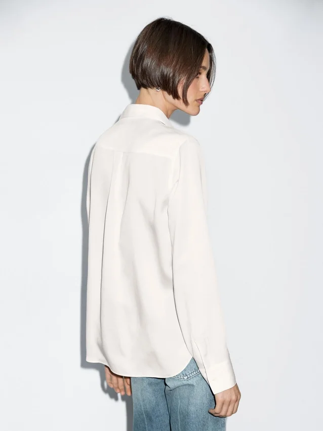 Soepelvallend overhemd. Lange mouwen met knoopsluiting aan de manchetten. Overhemdkraag. Knoopsluiting aan de voorkant. Plooidetail aan de achterkant.Samenstelling