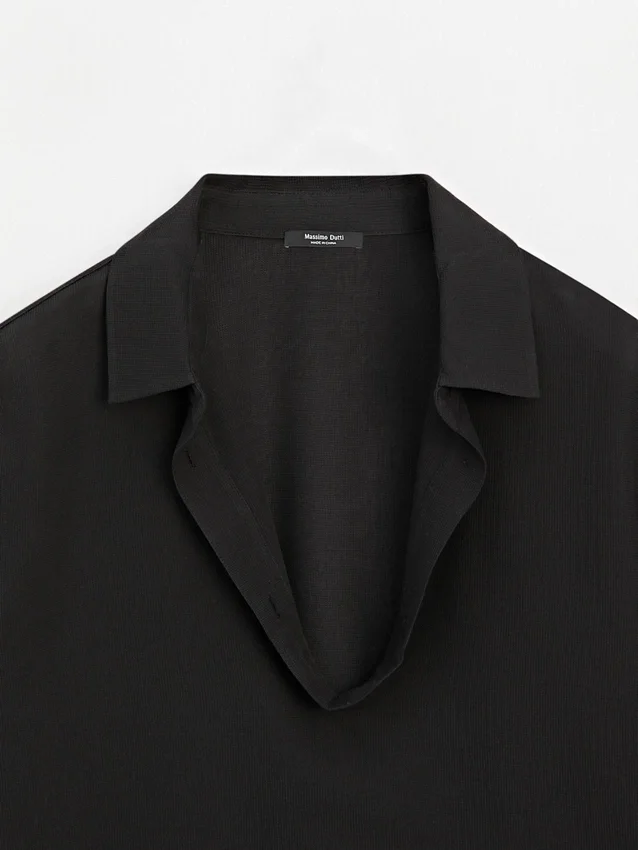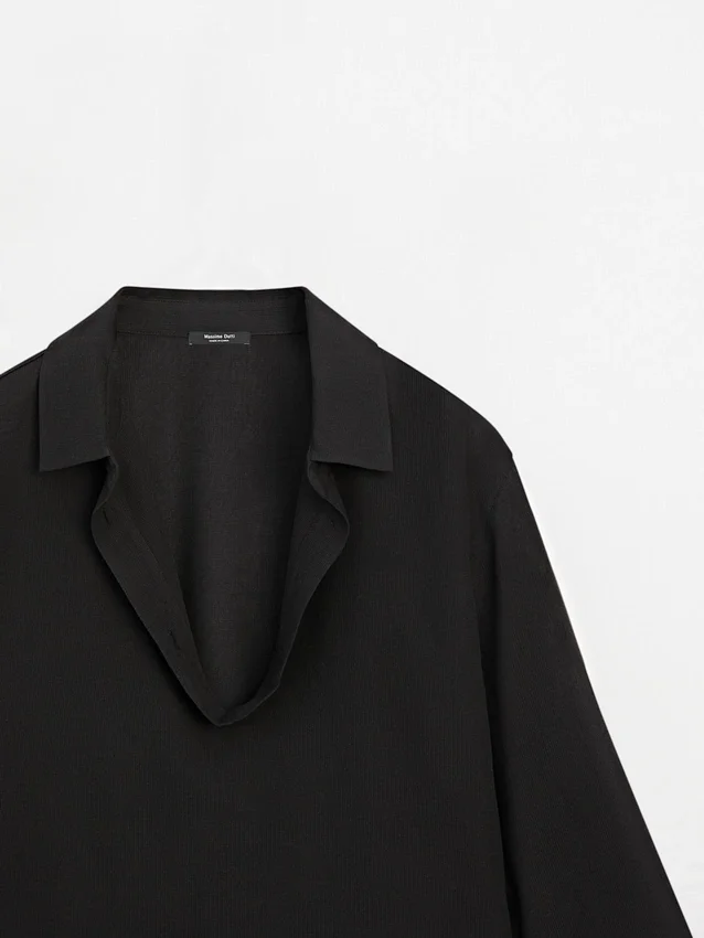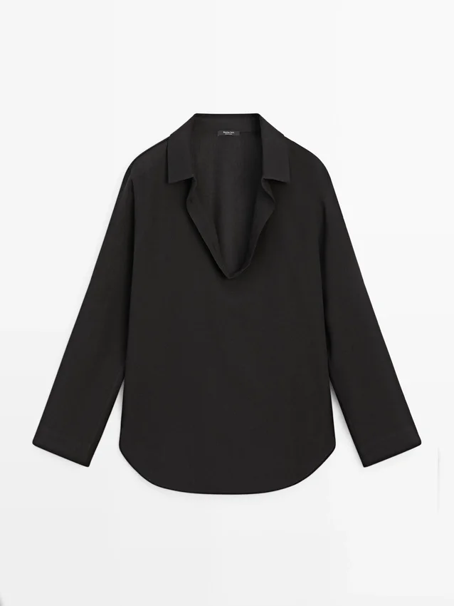 Overhemd van een katoenmix. Lange mouwen met manchetten met knopen. Reverskraag.