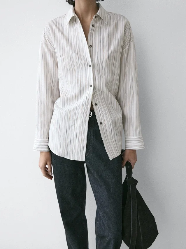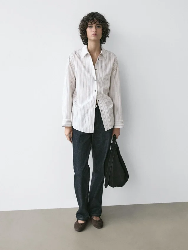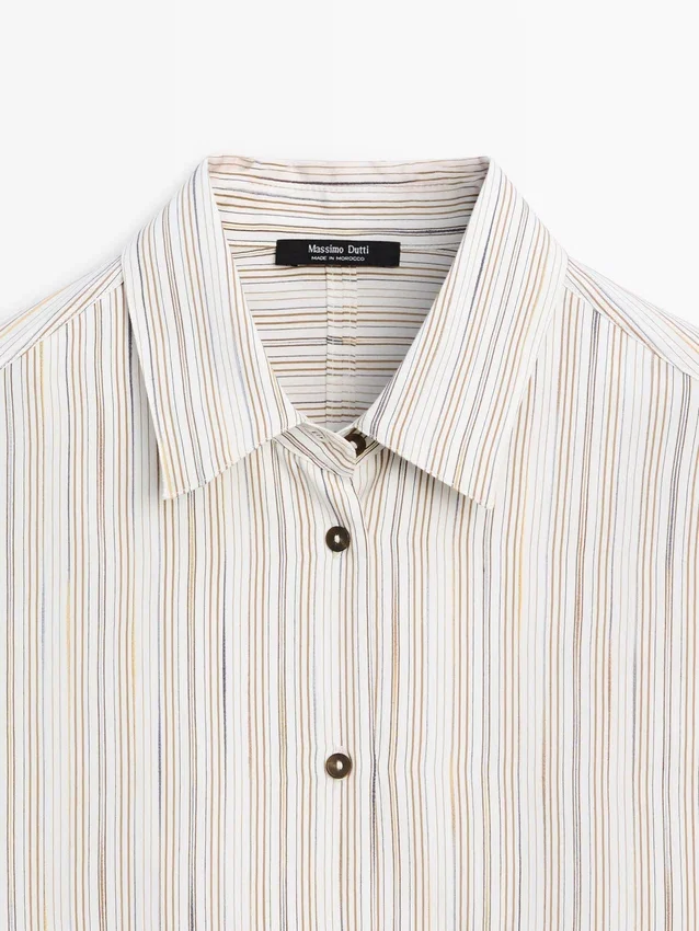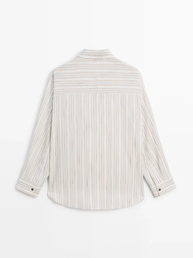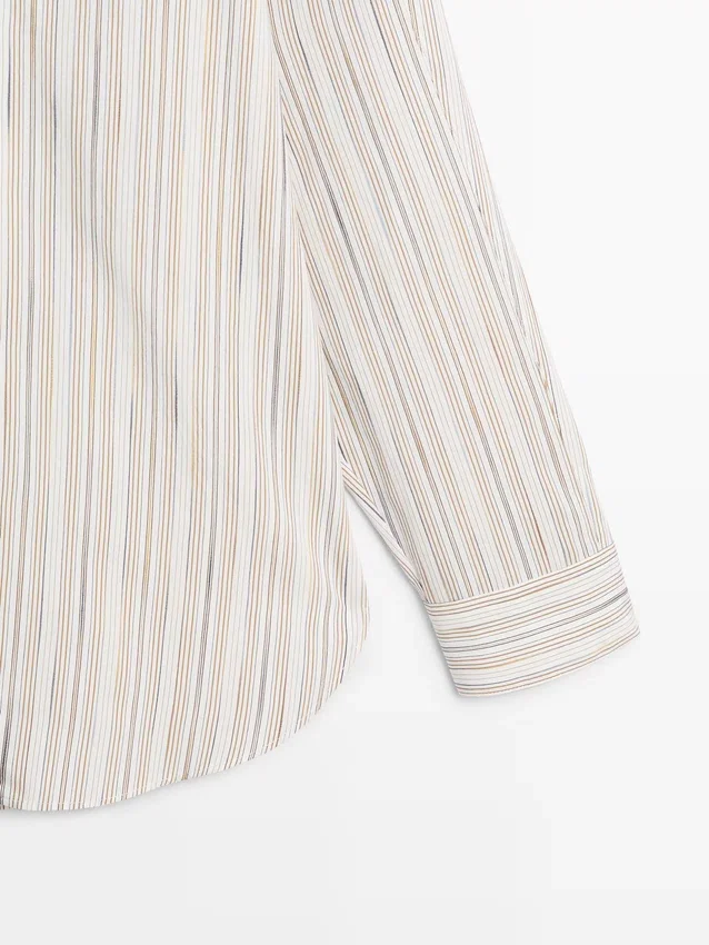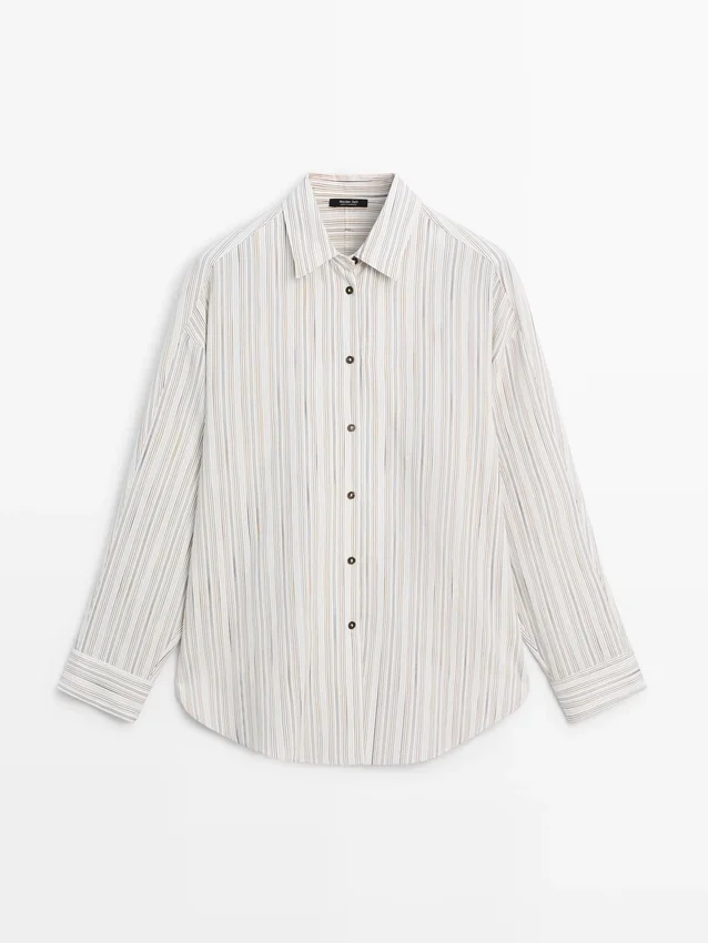 Soepelvallend overhemd. Lange mouwen met manchetten met knopen. Overhemdkraag. Sluiting met knopen aan de voorkant. Gestreepte details.