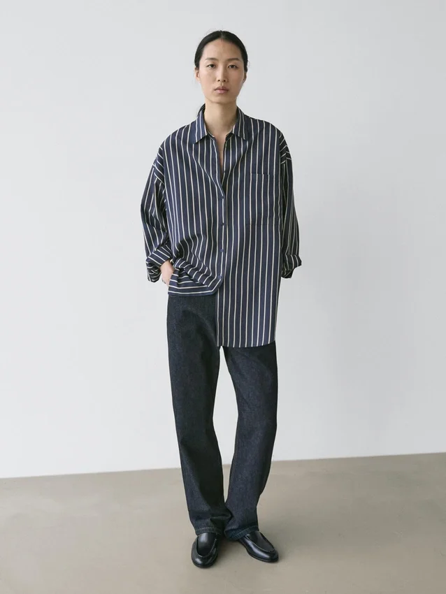 Soepelvallend overhemd. Lange mouwen met manchetten met knopen. Overhemdkraag. Voorkant met knopen. Breed en relaxed silhouet, niet getailleerd.