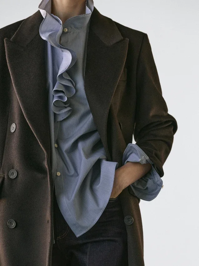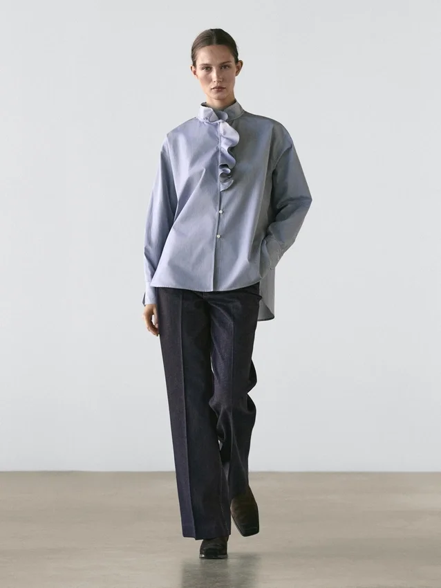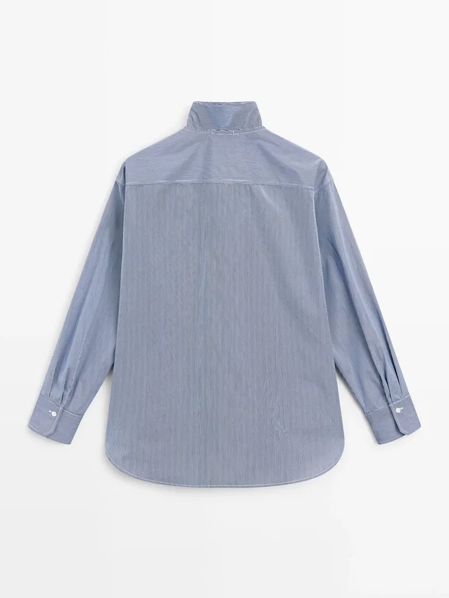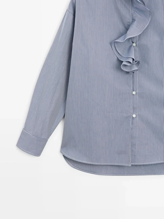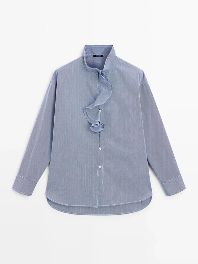 Overhemd gemaakt van 100% katoen. Lange mouwen. Ruches bij de hals. Knoopsluiting aan de voorkant. Gestreepte details.