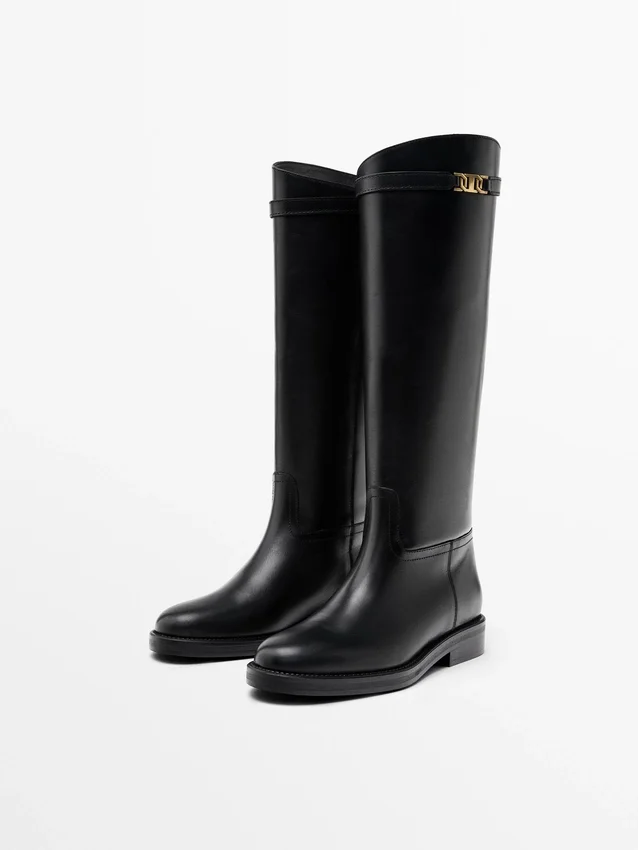 Gemaakt van rundleer. Afneembare enkelband. Gouden applicaties. Leren voering en binnenzool. Schachthoogte: 42 cm. Schachtbreedte: 37 cm. Hak: 3 cm. Inclusief Airfit®-binnenzool: flexibele technische schuimzool, ontworpen voor meer comfort.