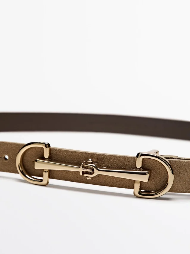 Riem gemaakt van rundleer met gespleten leer afwerking. Equestrian stijl.