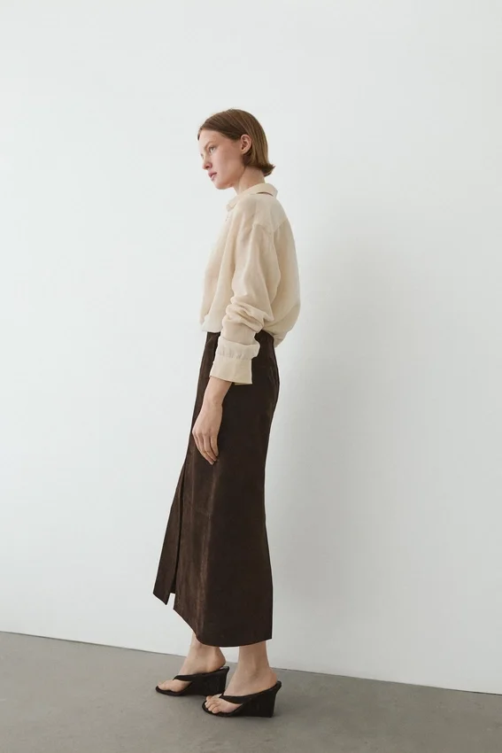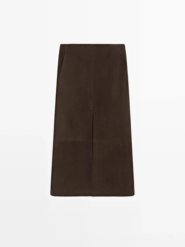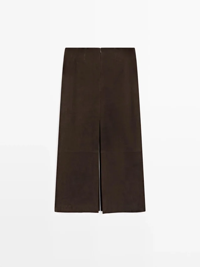 Rechte midi-rok van nubuckleer