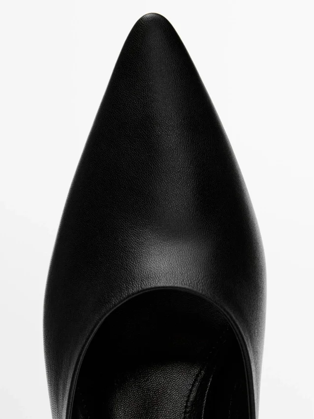 Gemaakt van schapenleer. Open achterkant. Spitse neus. Leren voering en binnenzool. Sleehak. Hak: 4,5 cm.Samenstelling