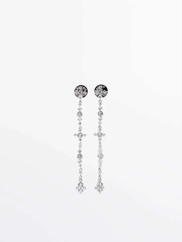 Glanzende hangende oorbellen. Sluiting met drukknoop.