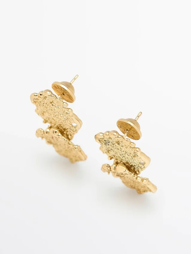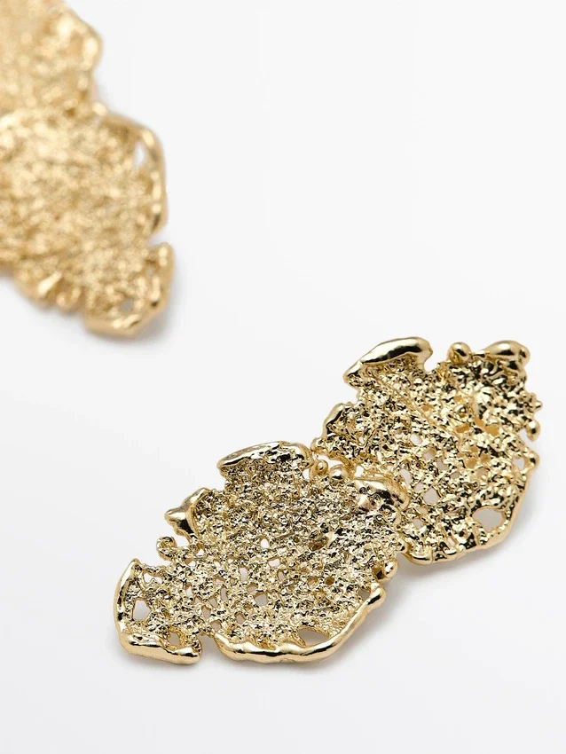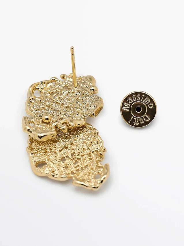 Oorbellen. Abstract metalen stuk. Drukknopsluiting. Lengte: 4,2 cm.