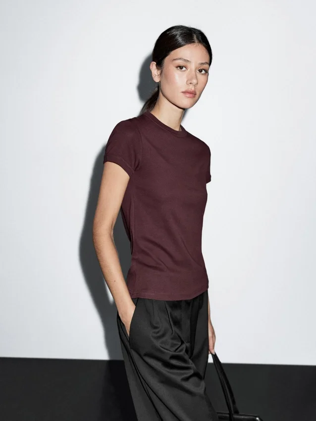 T-shirt van katoen. Ronde hals. Korte mouwen. Geribde boorden.
