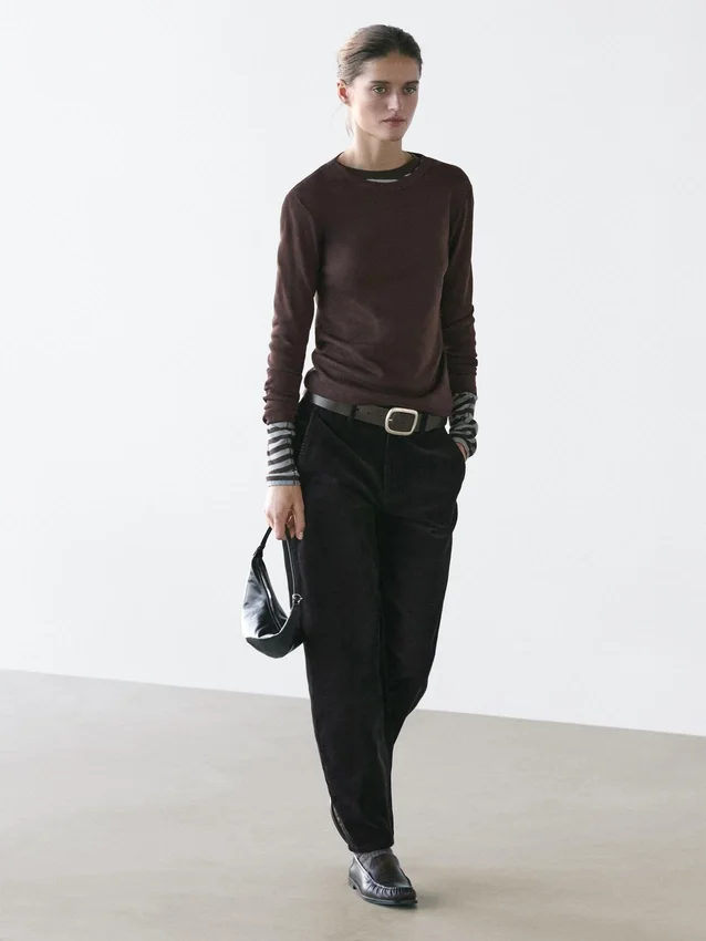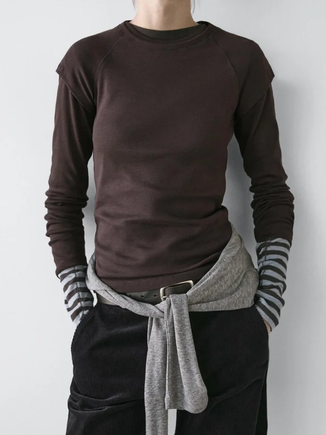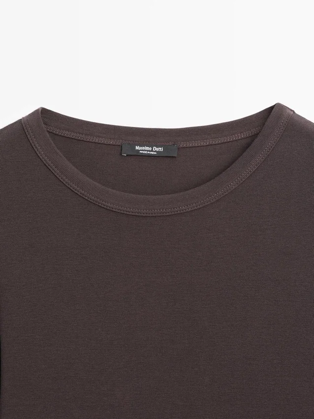 T-shirt gemaakt van katoen. Licht getailleerd silhouet, voor een meer gedefinieerde en slanke look. Ronde hals. Lange mouwen.