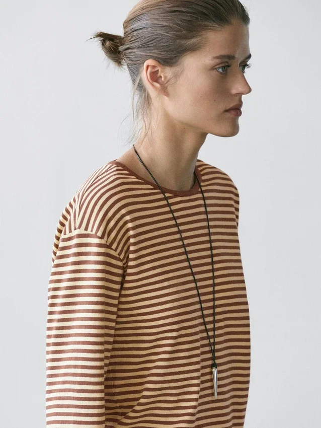 Long Sleeve T-Shirt. Ronde hals. Gestreepte print.