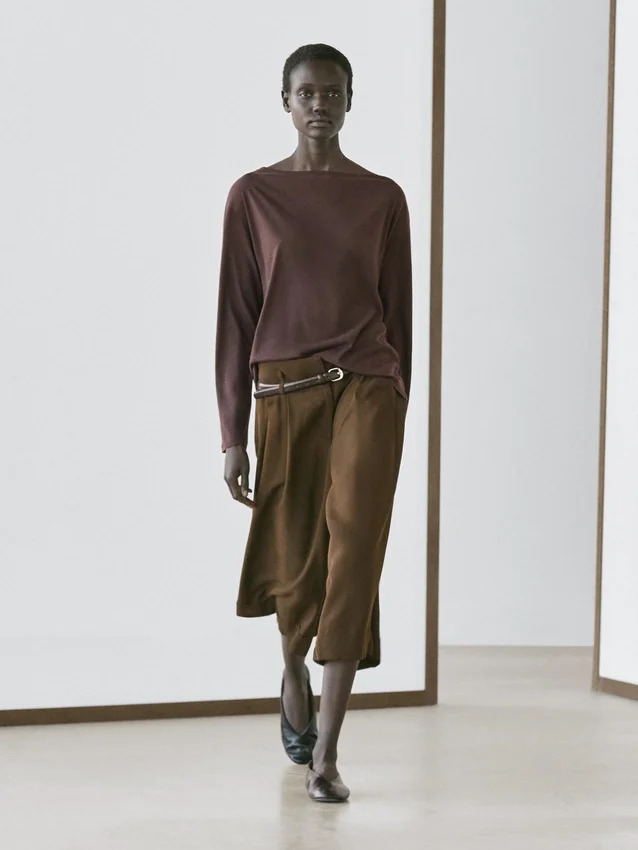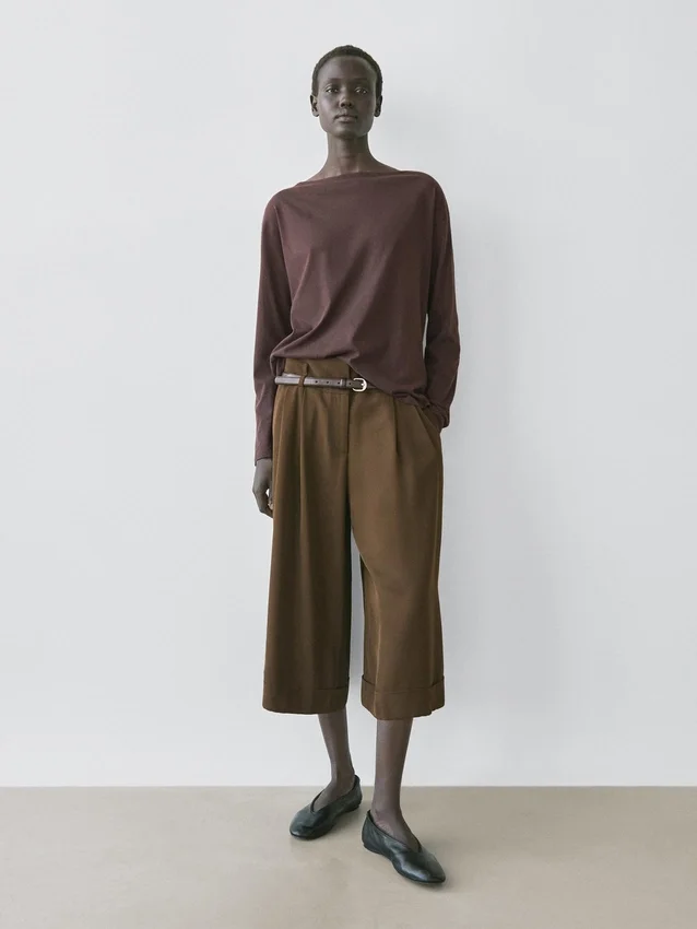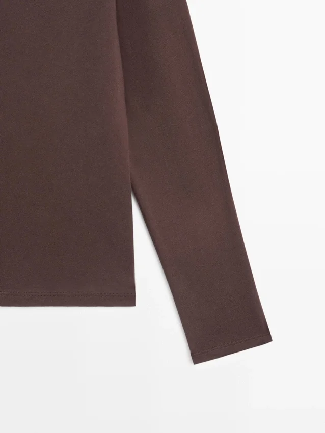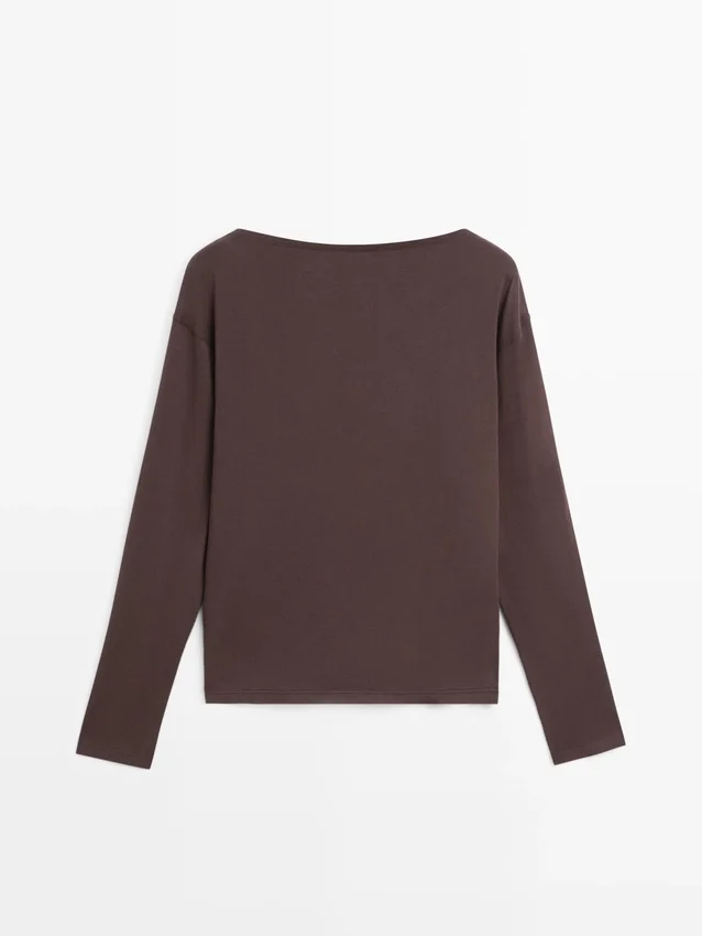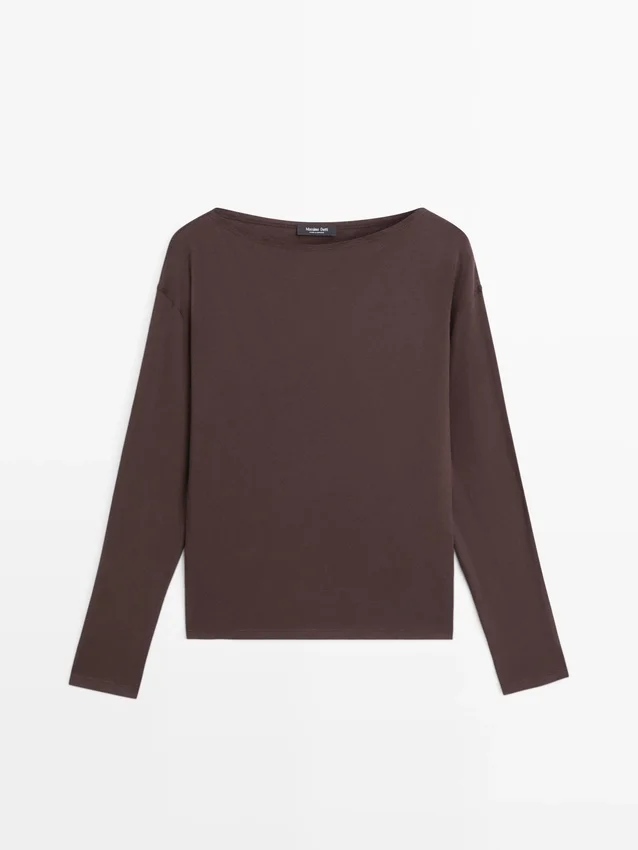 T-shirt gemaakt van katoen. Boottoets. Lange mouwen. Fijne, lichtgewicht stof.