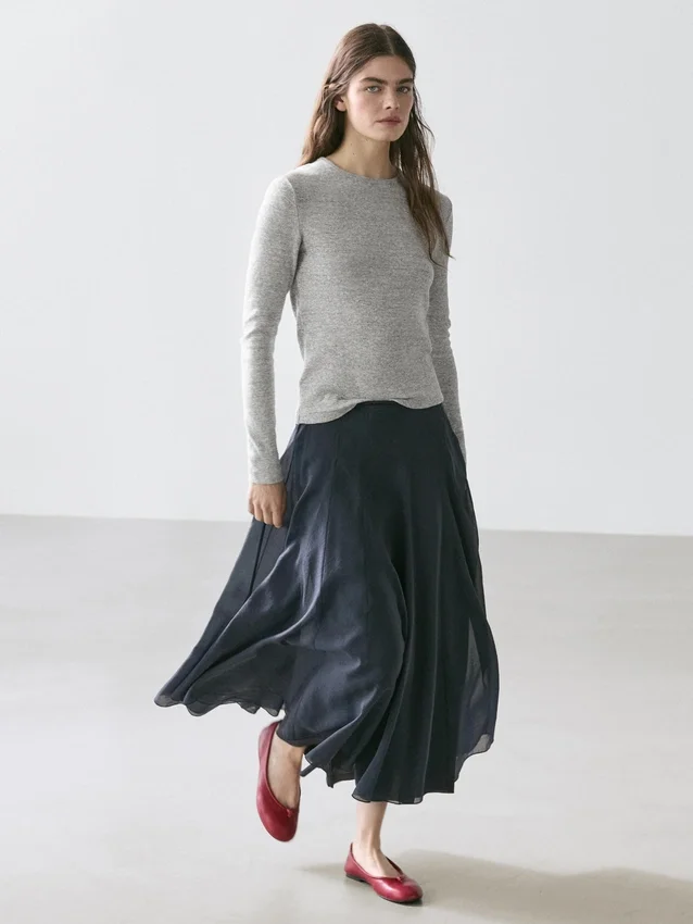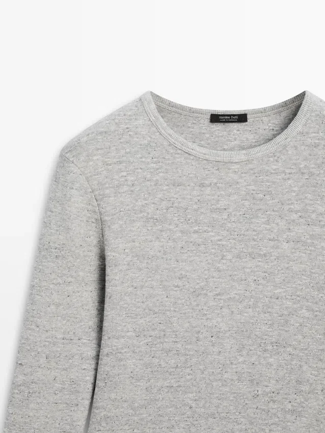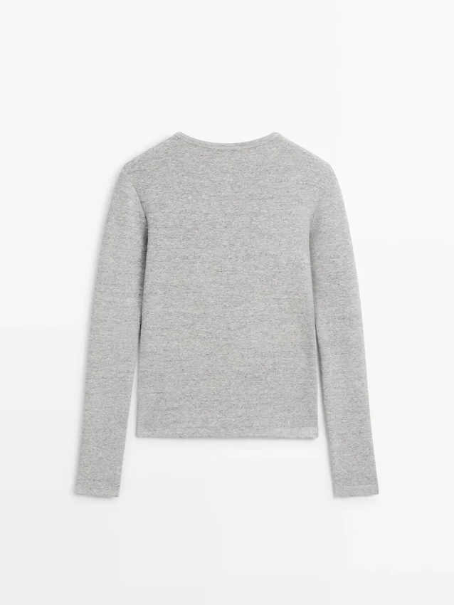 T-shirt van katoenmix. Ronde hals. Lange mouwen. Afwerking met spikkeleffect.