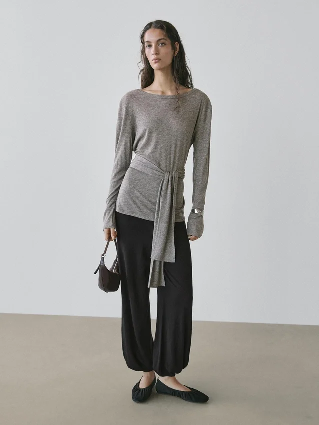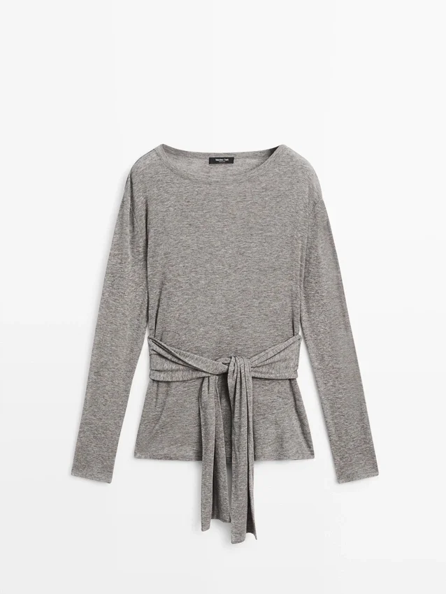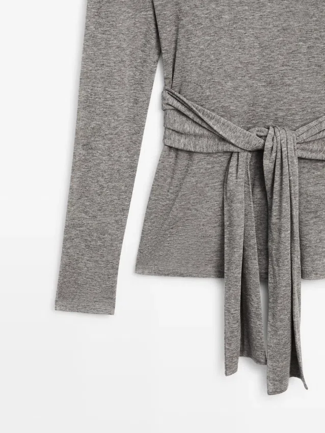 T-shirts. Ronde hals. Lange mouwen. Strikdetail aan de voorkant.
