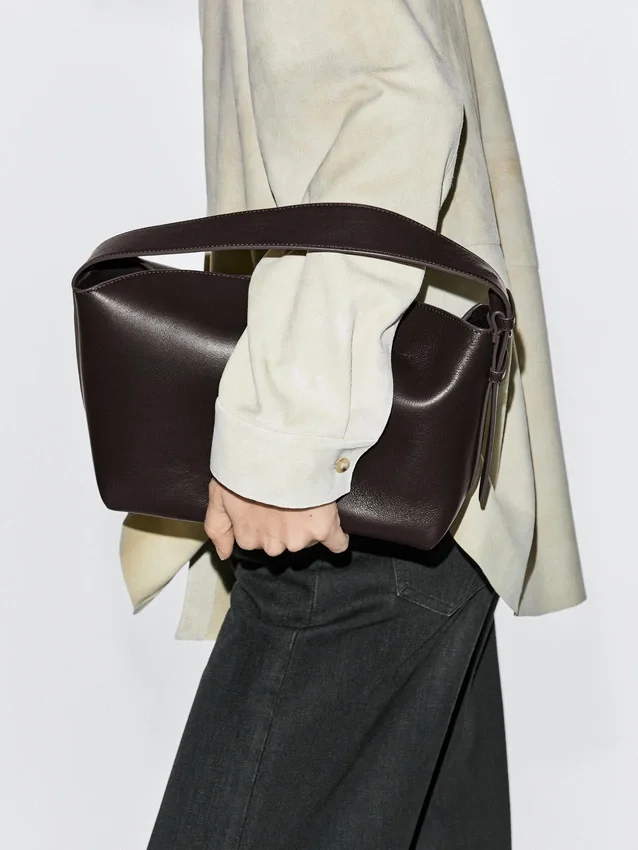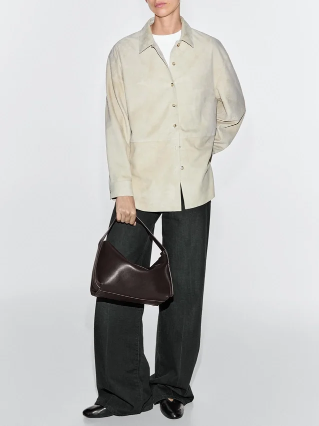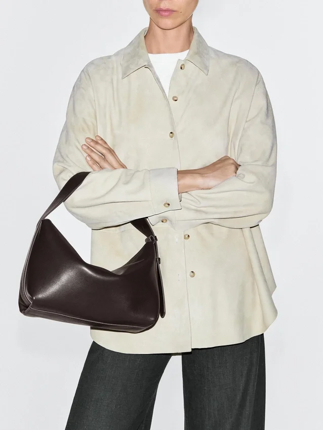 Tas gemaakt van schapenleer met een nappa-afwerking. Schouderriem. Katoenen voering.