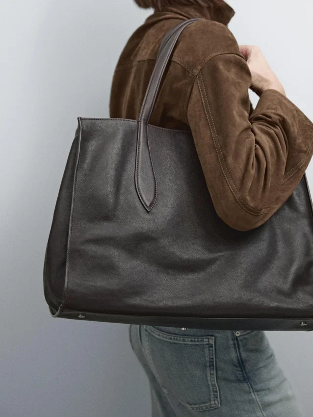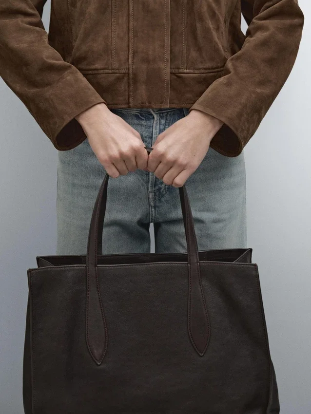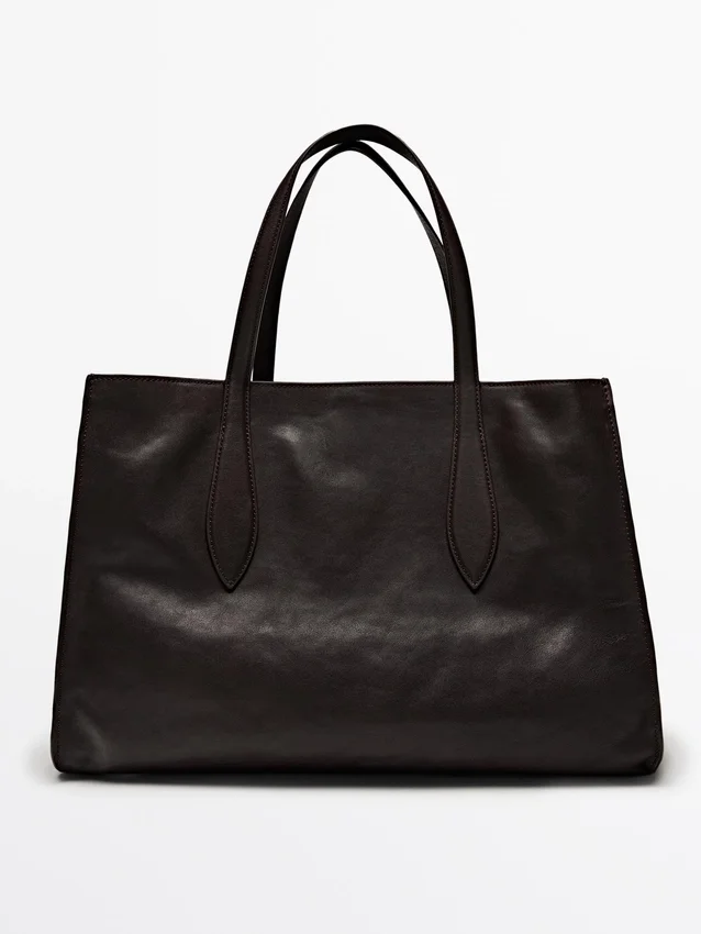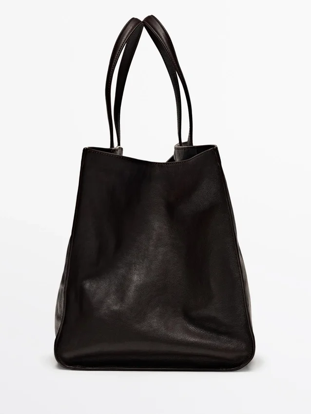 Tote bag gemaakt van rundleer met een nappa-afwerking. Twee handvatten en/of schouderriem. Hoofdvak. Katoenen voering.