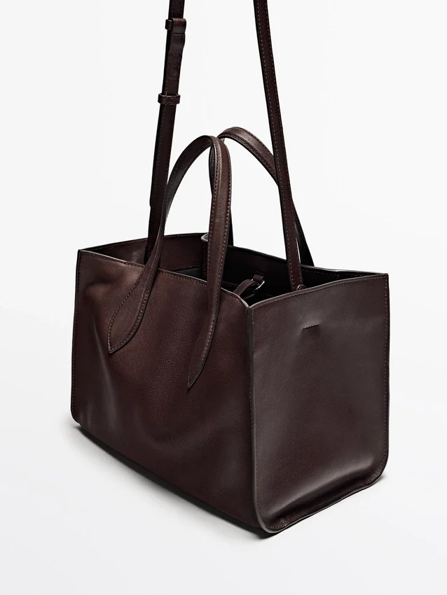 Tote bag gemaakt van rundleer met een nappa-afwerking. Verstelbare schouderriem.