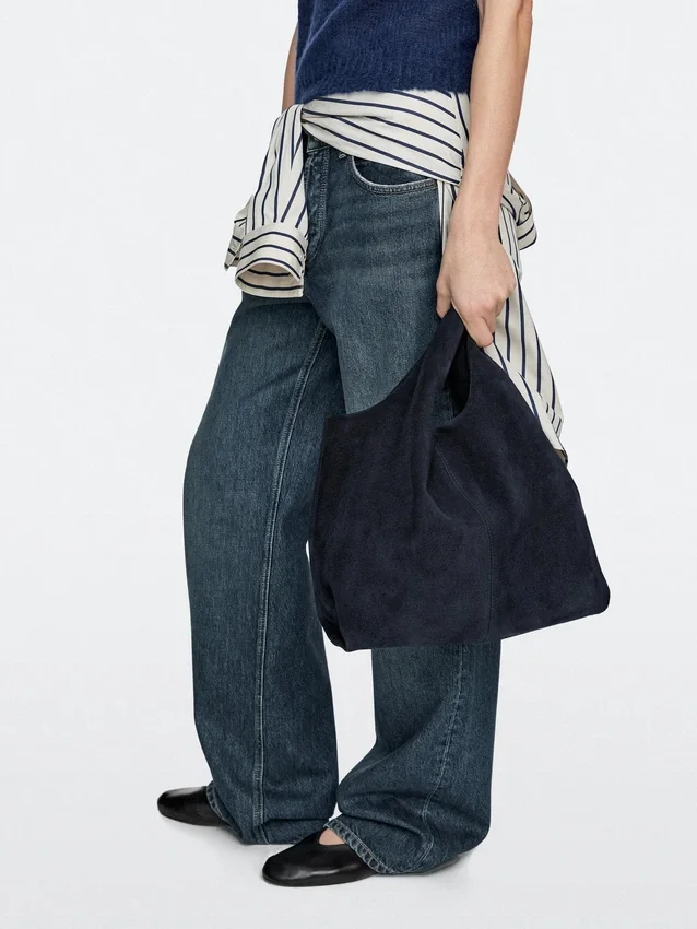 Middelgrote shopper van gespleten leer