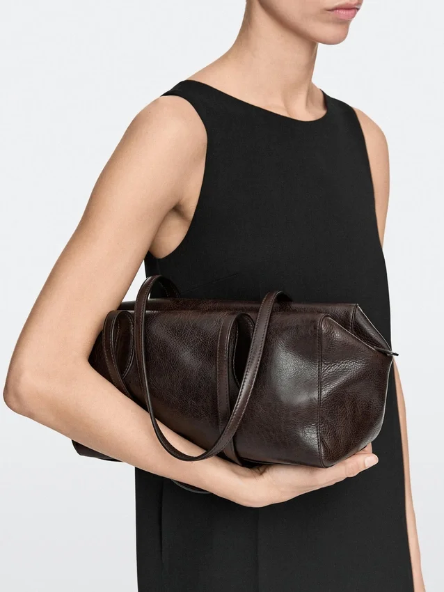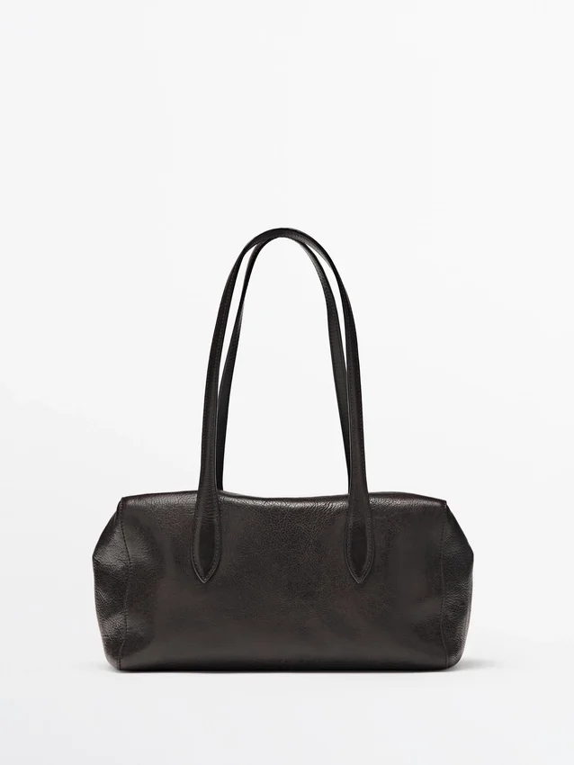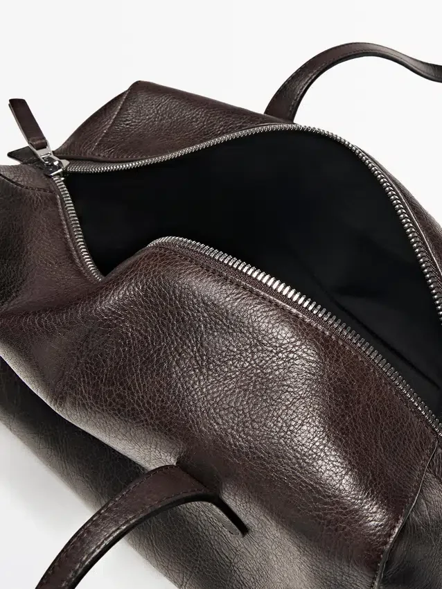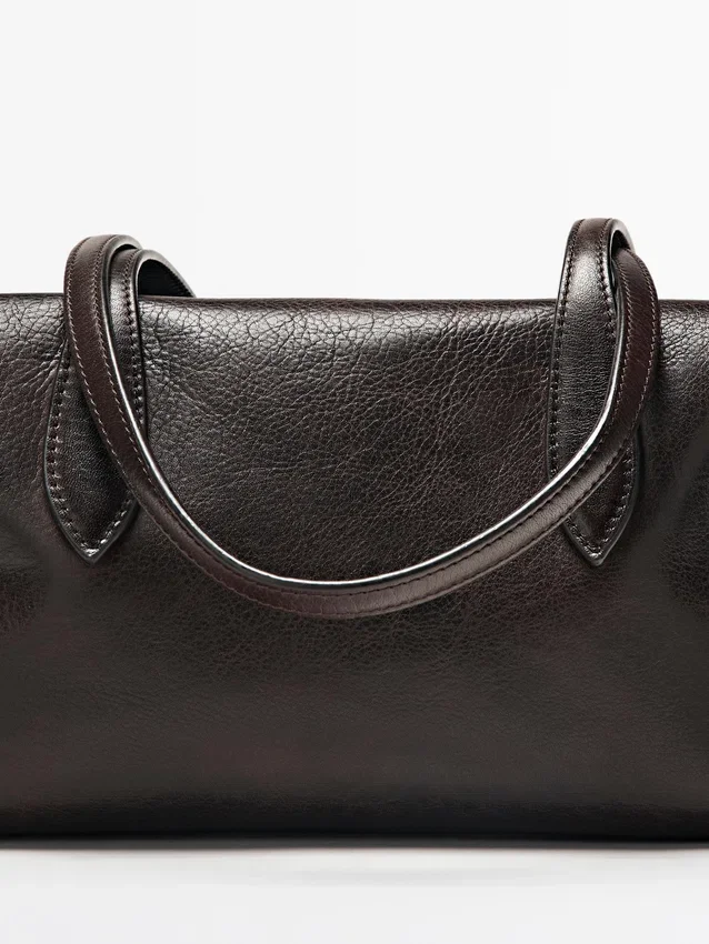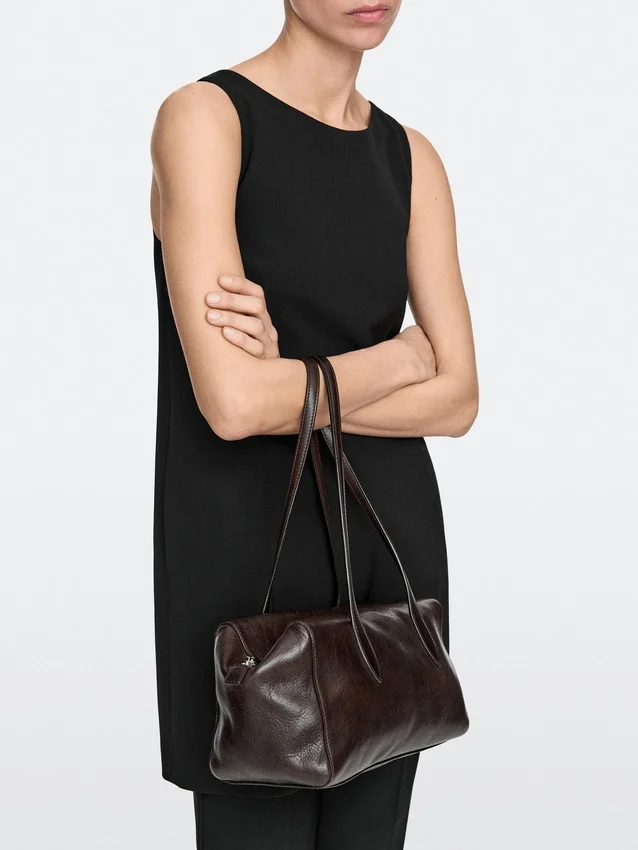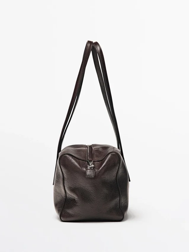 Handtas gemaakt van rundleer met een nappa-afwerking. Ritssluiting. Twee handvatten en schouderbanden. Katoenen voering.