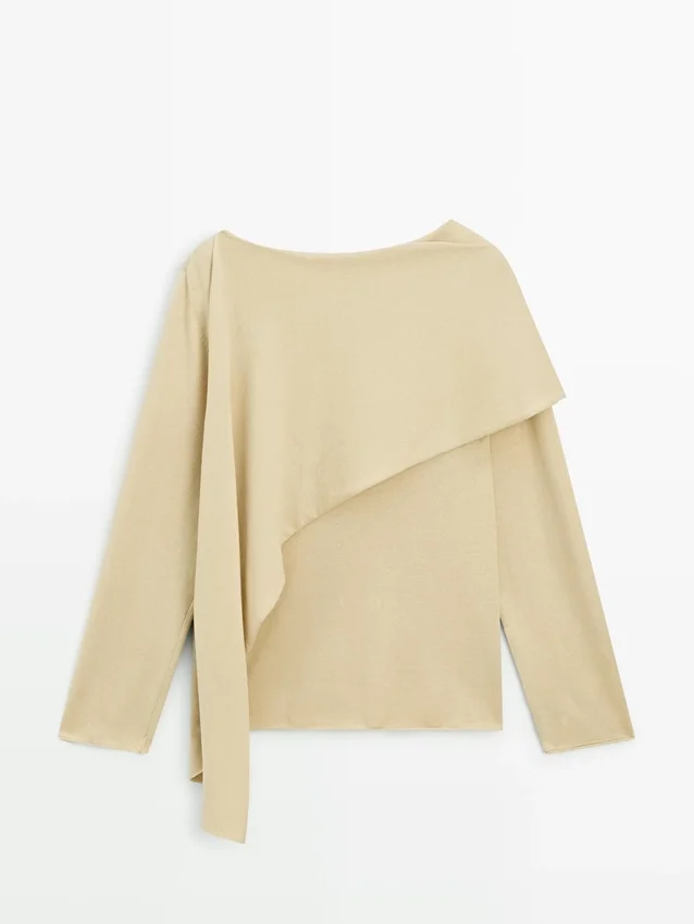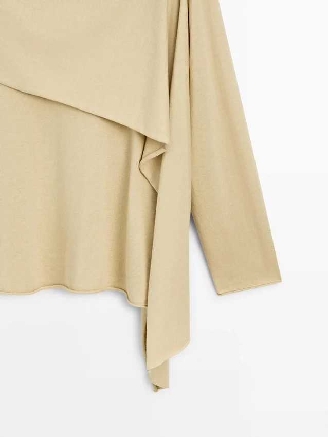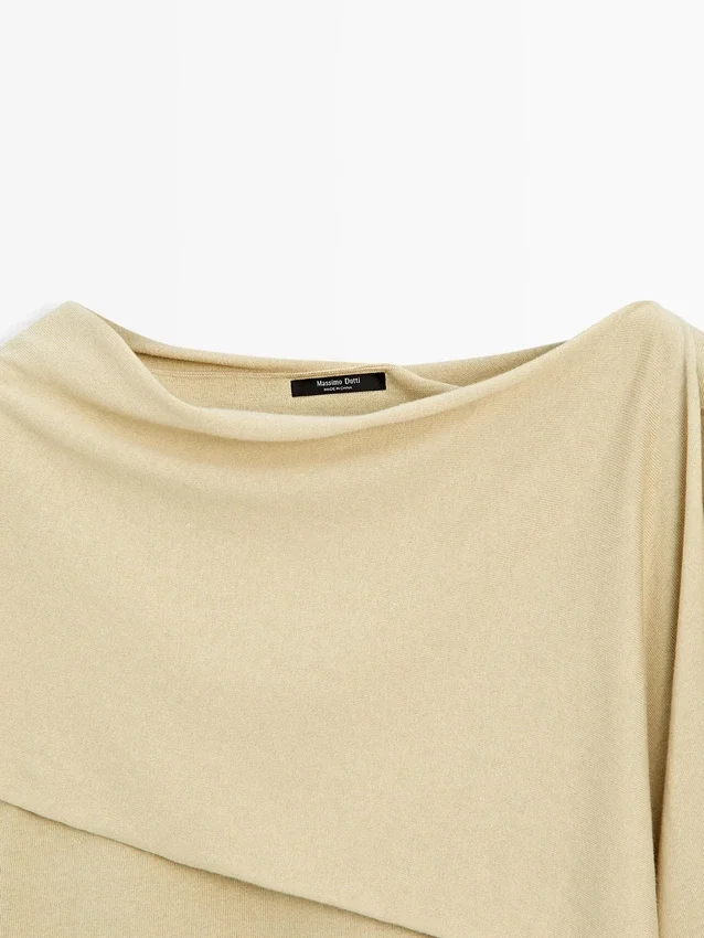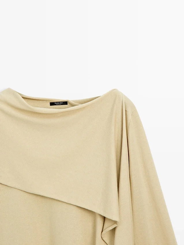 Gebreide trui met sjaalsdetail bij de hals. Boatshirt. Lange mouwen. Soepel vallende en lichtgewicht stof.