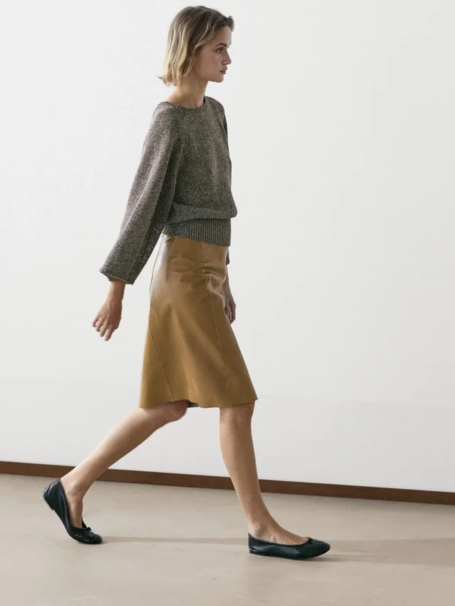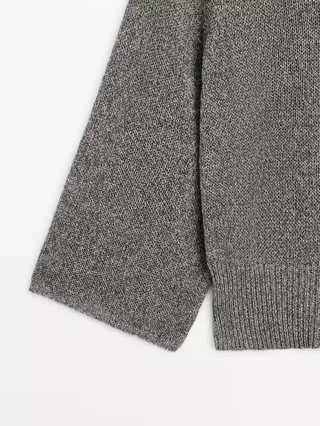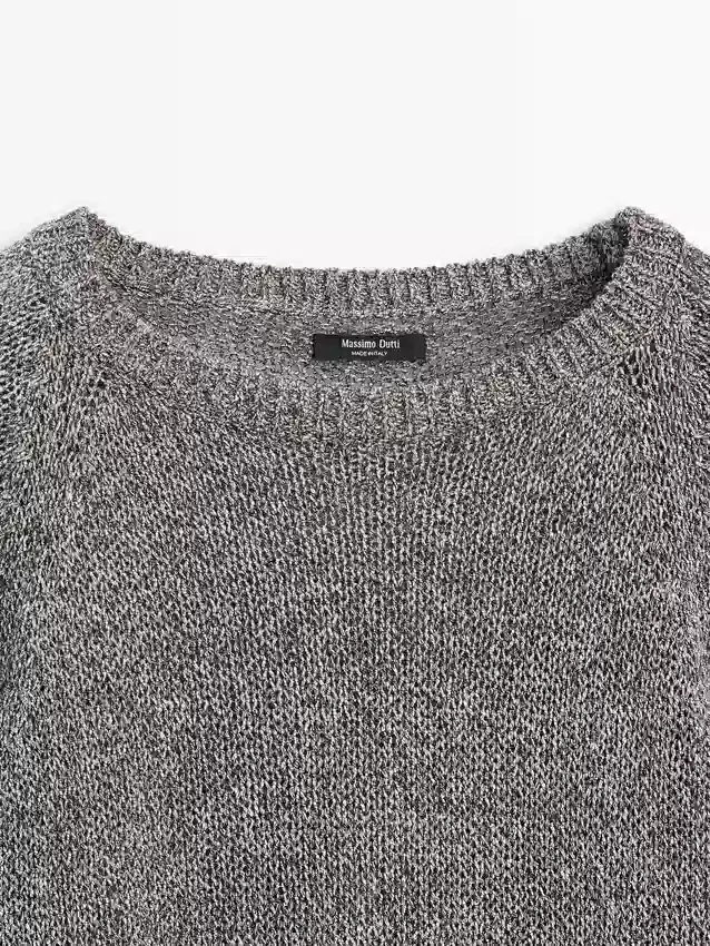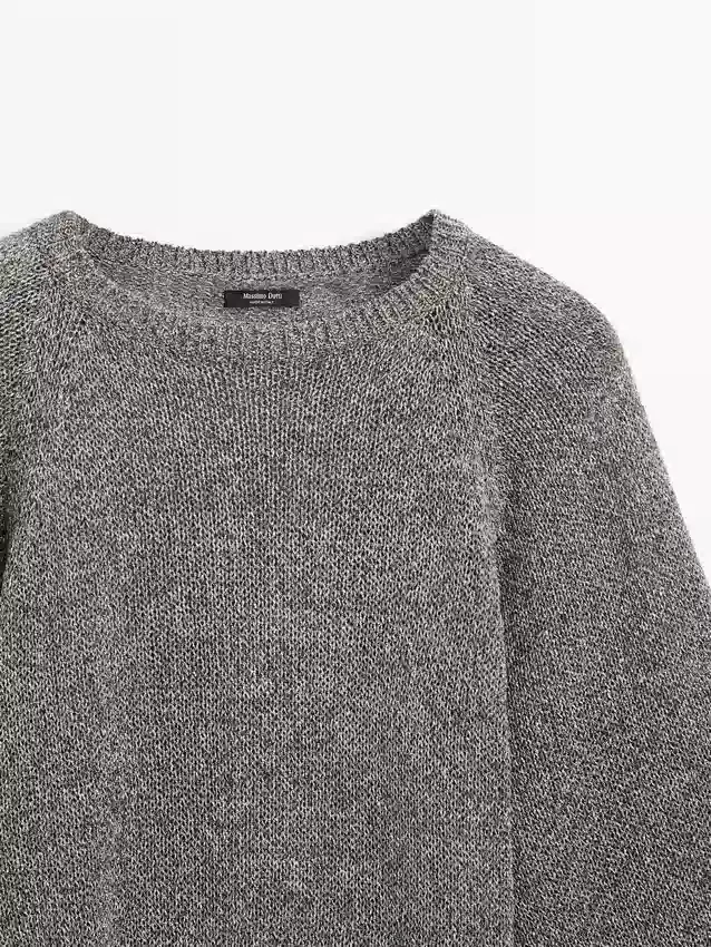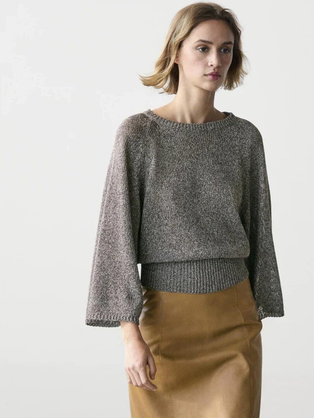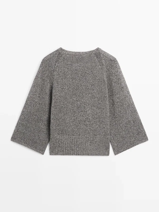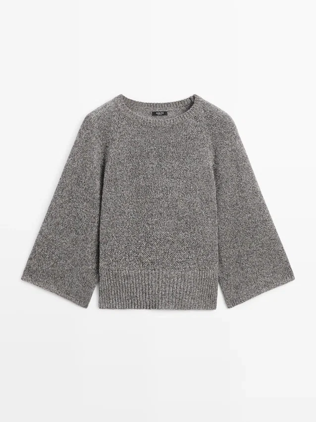 Gebreide trui gemaakt van een katoenmix. Ronde hals. Brede lange mouwen. Geribde boorden.