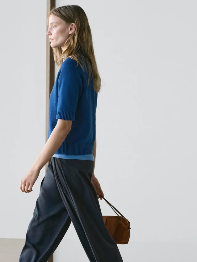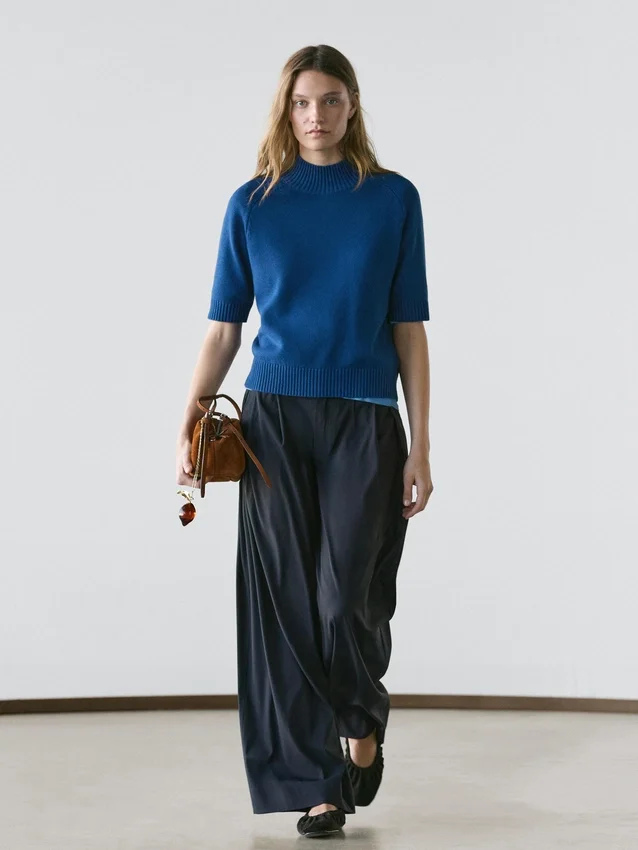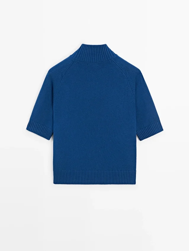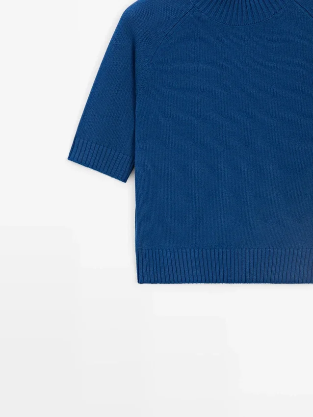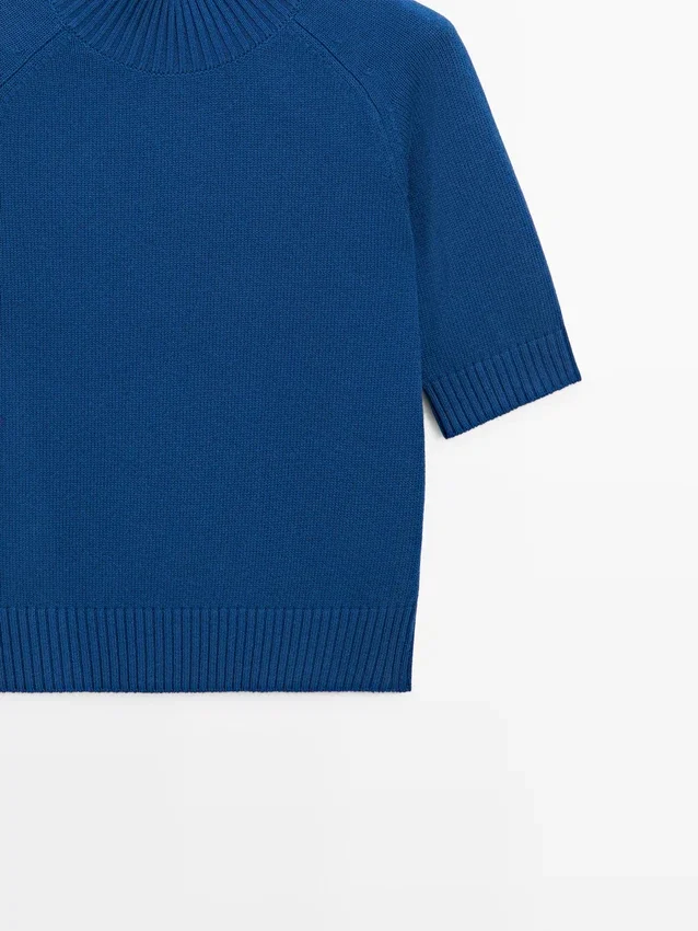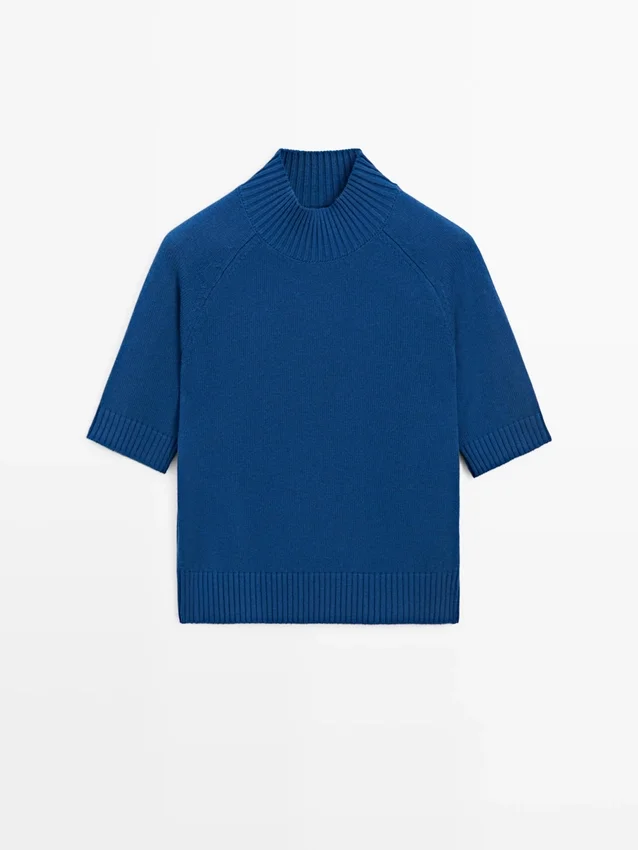 Mock-turtleneck. Mouwen tot aan de elleboog. Geribde boorden.