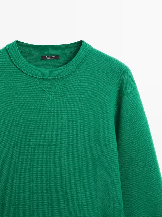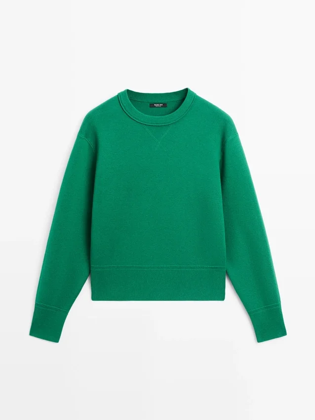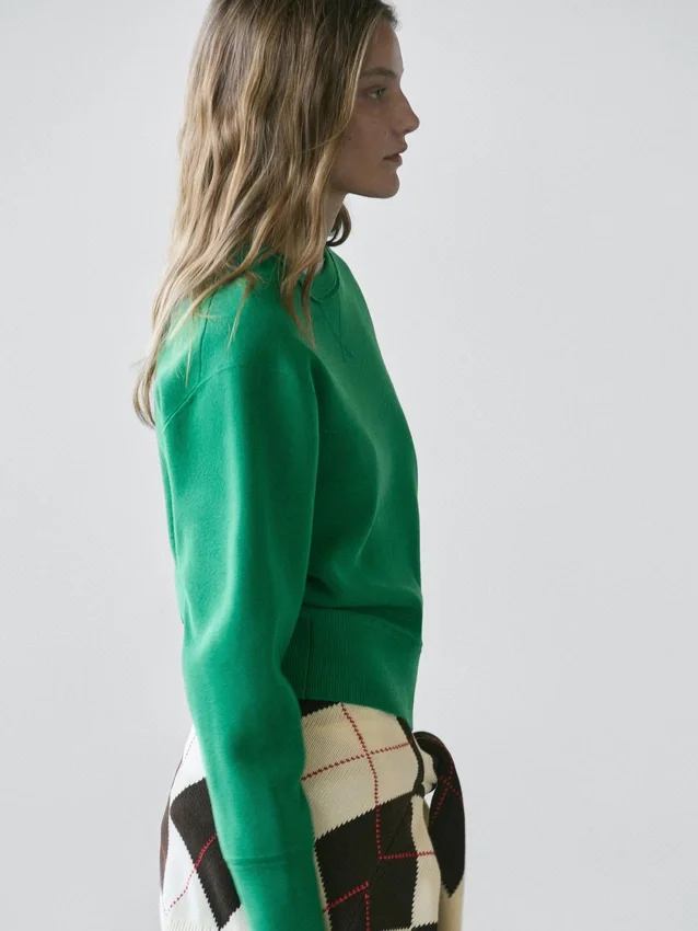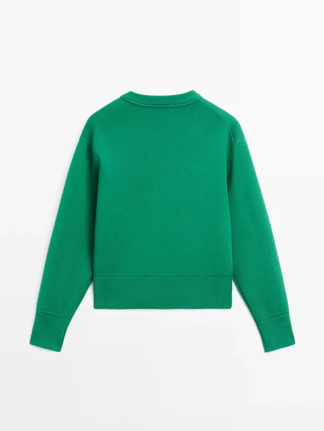 Ronde hals. Lange mouwen. Geribde boorden.