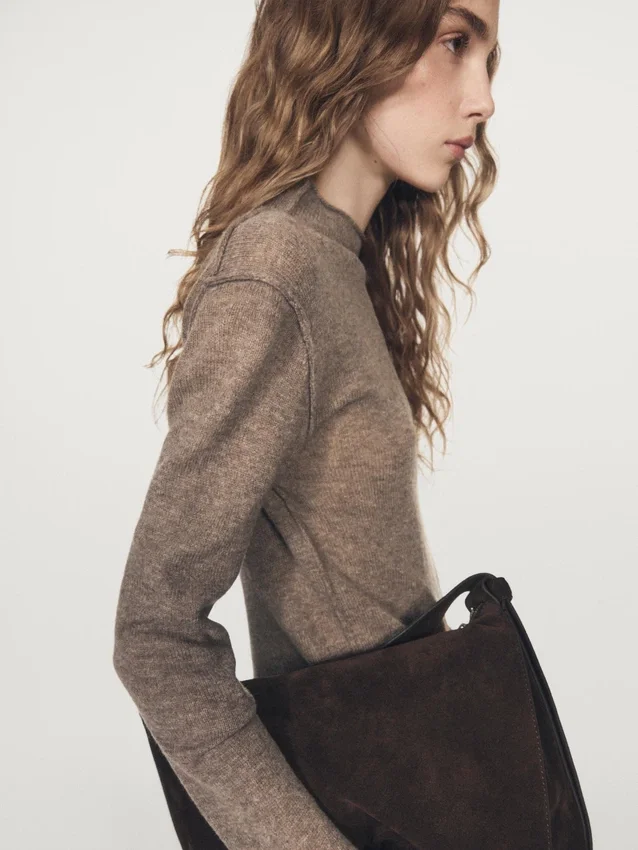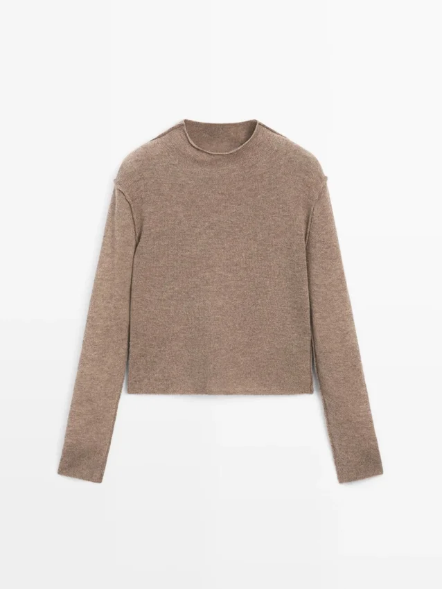 Gebreide trui gemaakt van een wolmix. Schijn-col. Lange mouwen. Naaddetails.