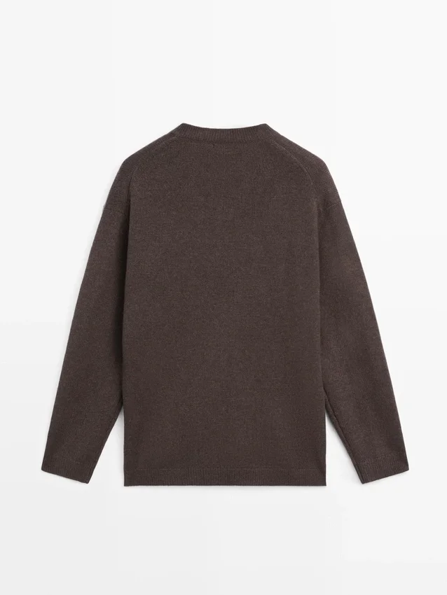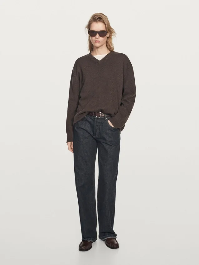 Gebreide trui gemaakt van een wolmix. V-hals. Lange mouwen. Geribde boorden. Oversized.