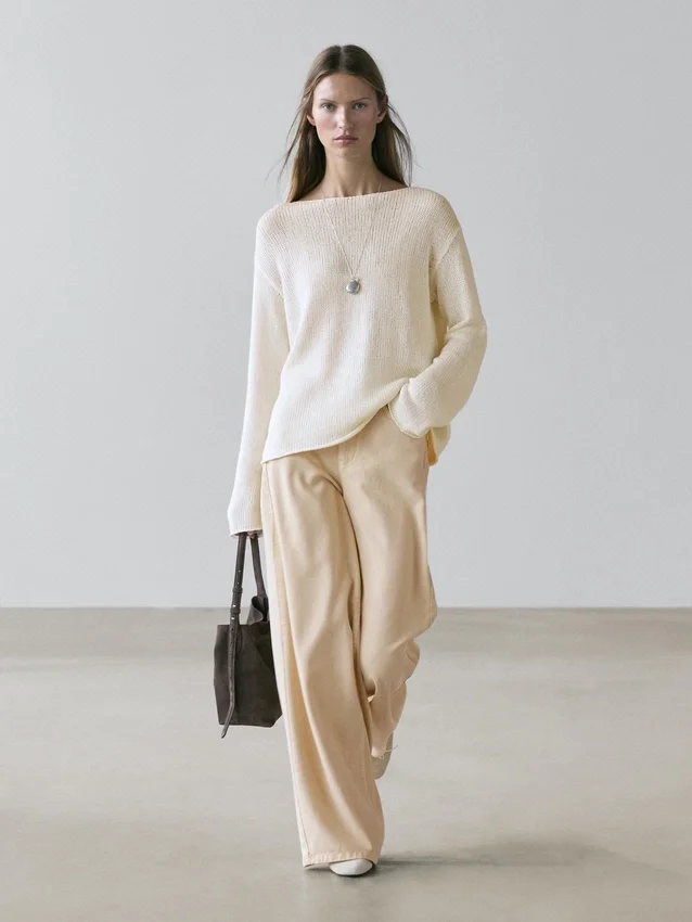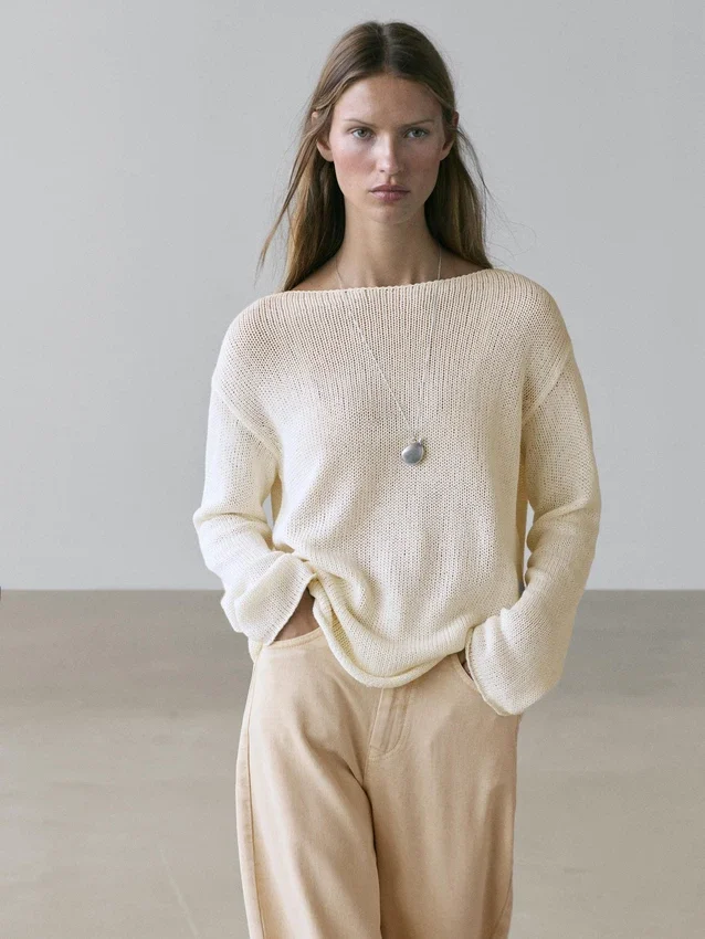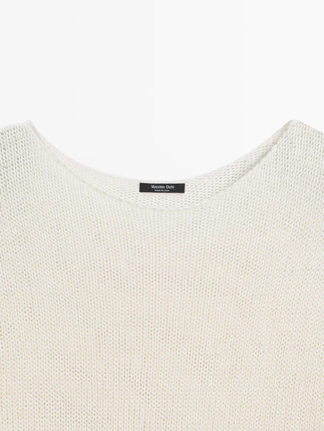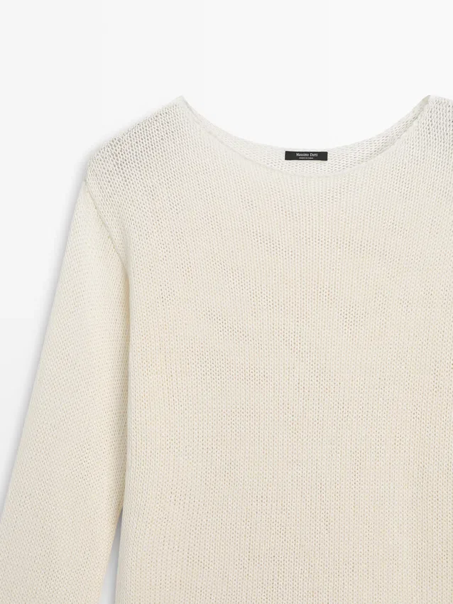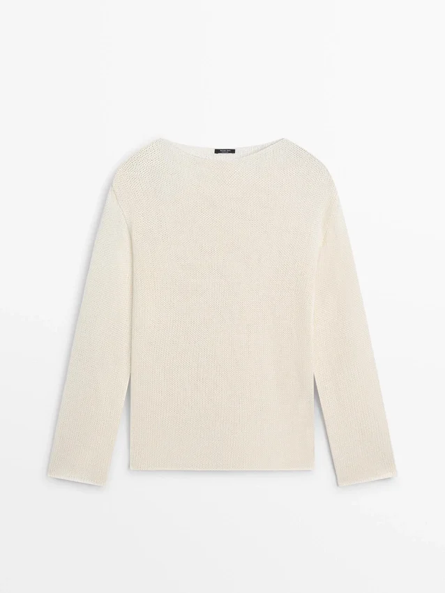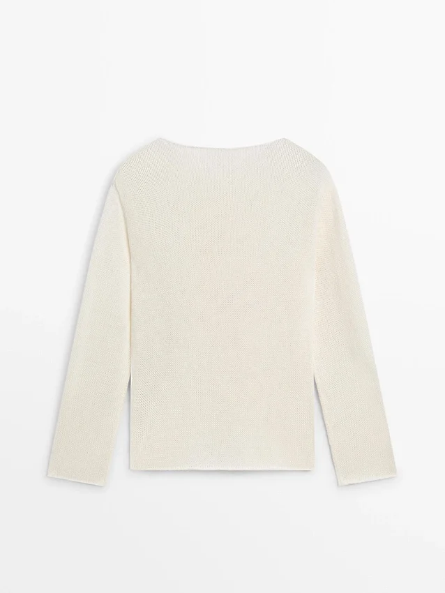 Boatneck. Lange mouwen. Opengewerkte stof.