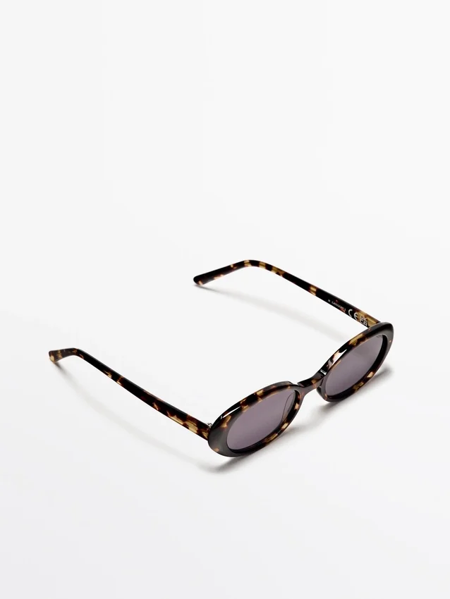 Zonnebril van kunsthars. Glazen met UV-filter van categorie 3. Inclusief beschermend etui van reliëfleer.
