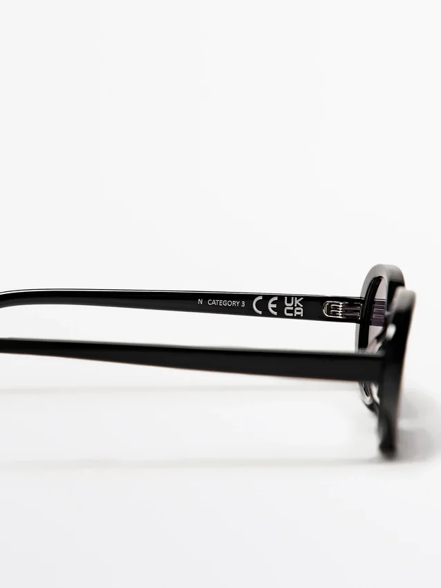 Zonnebril van kunsthars. Glazen met UV-filter van categorie 3. Inclusief beschermend etui van reliëfleer.
