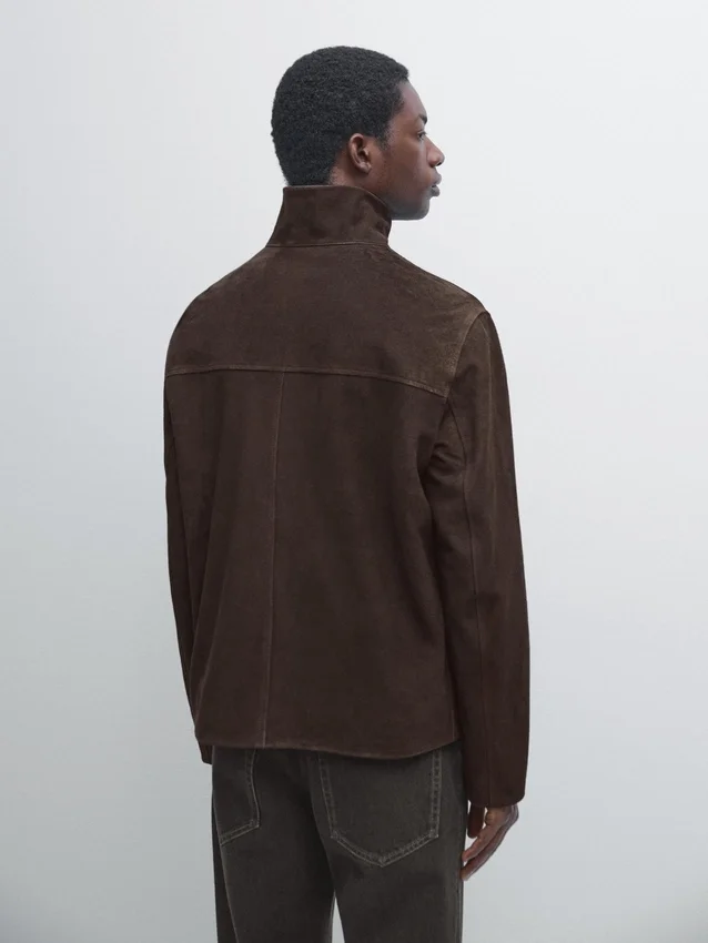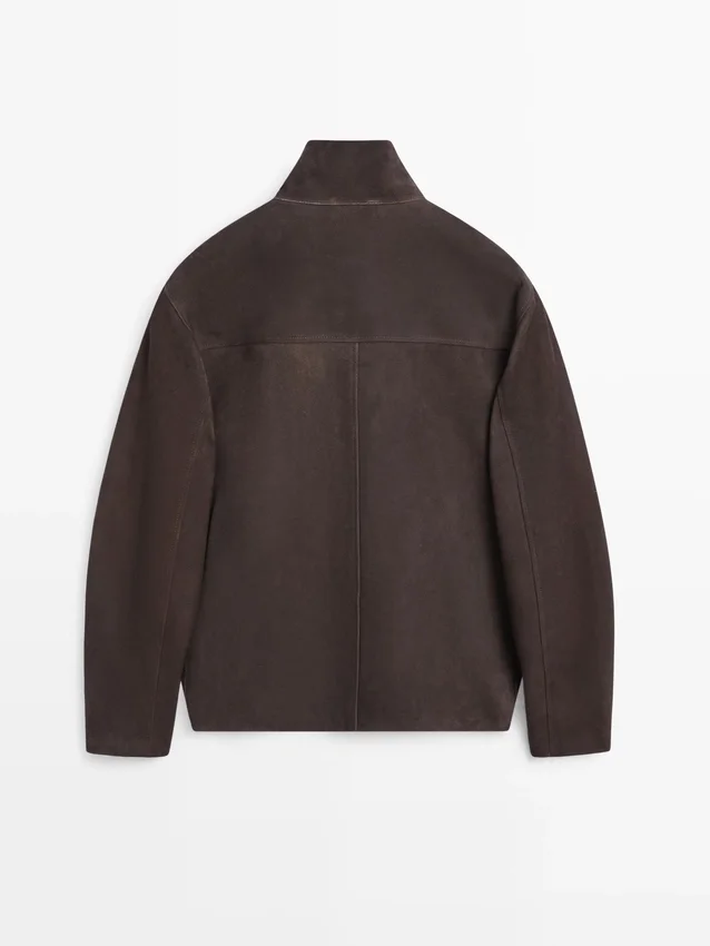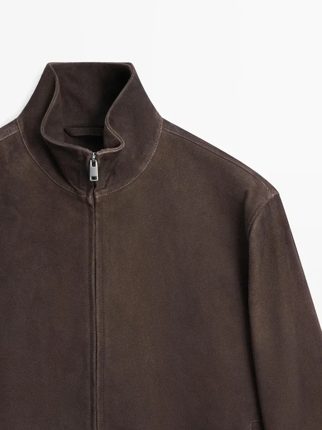 Door de kleur “Grijs” te selecteren, kiest u het grijs-bruine model dat op de foto’s te zien is. Jas gemaakt van geitenleer met een suède afwerking. Lange mouwen. Het heeft een tweewegritssluiting. Hoge kraag. Twee zijzakken.