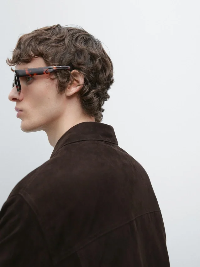 Jasje gemaakt van geitenleer met suède afwerking. Lange mouwen. Tweewegritssluiting verborgen door een knoopsluiting met drukknopen. Binnenzak met drukknopen. Klepzakken met drukknoopsluiting. Gevoerd.