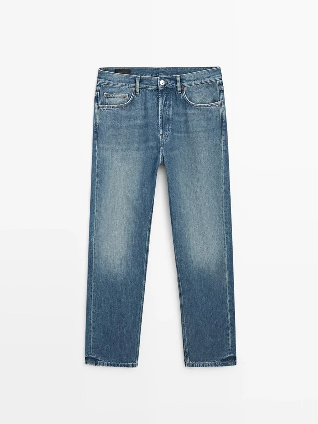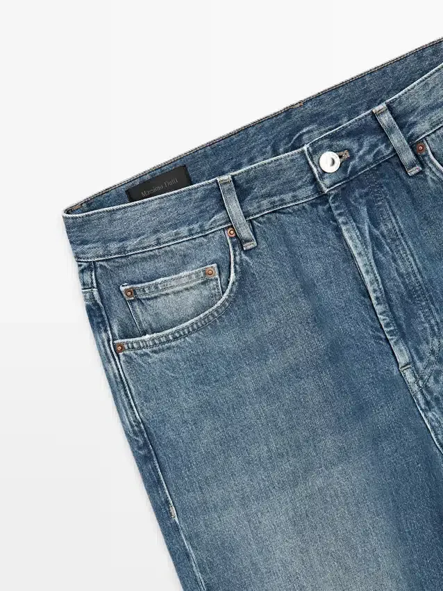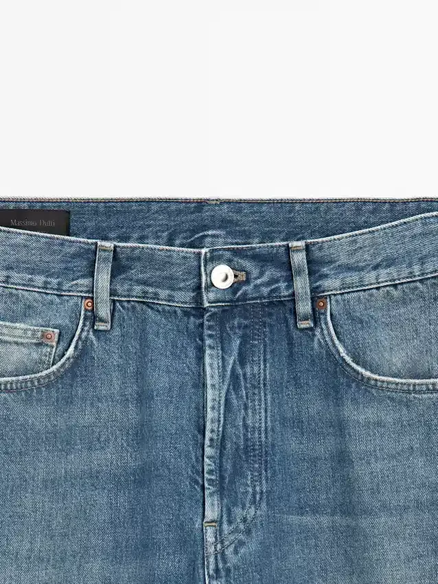 Jeans met rechte pijpen: recht silhouet van de taille tot de enkel, zonder extra aanpassingen aan de pijpen. Tailleband met riemlussen. Sluiting met knopen aan de voorkant. Ontwerp met vijf zakken. Afwerking met vintage-effect die de natuurlijk verouderde look van denim met koperen details weergeeft. Gemaakt in Italië.
