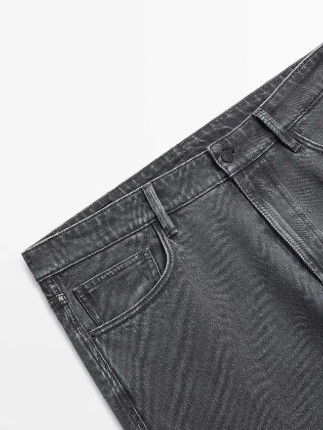 Slim Fit Jeans: Deze pasvorm heeft een licht getailleerd silhouet, strak bij de taille en de pijpen. Details met riemlussen. Vijf-zakkenontwerp.