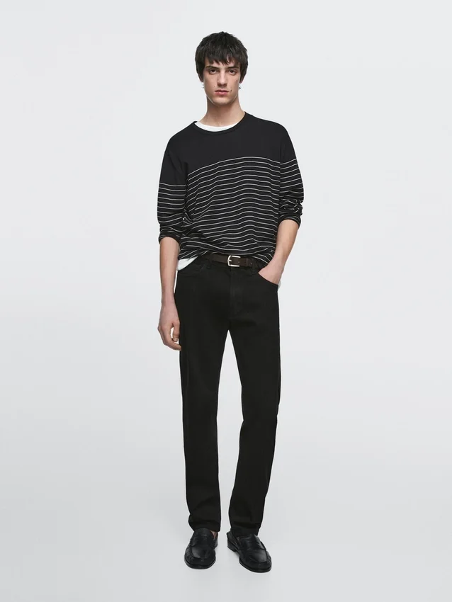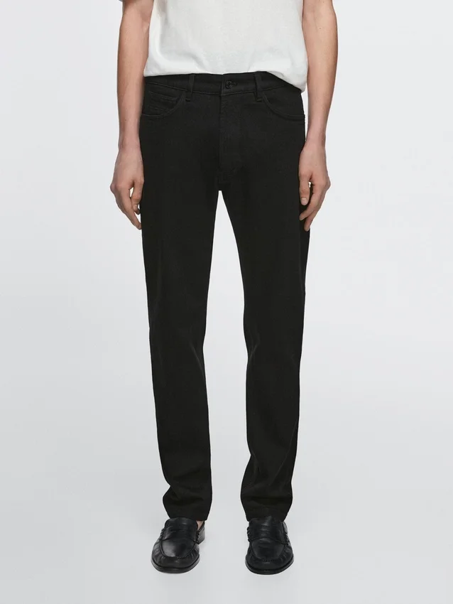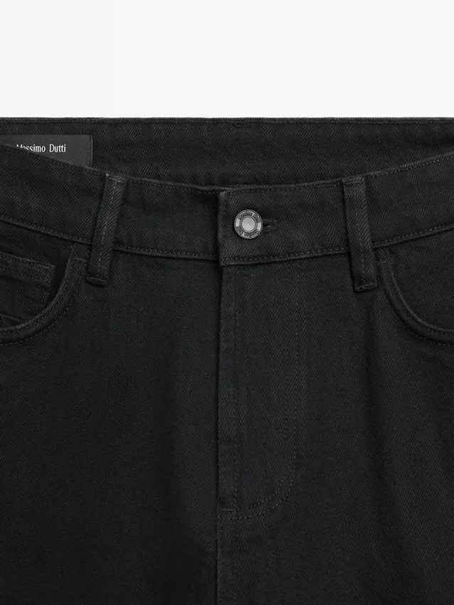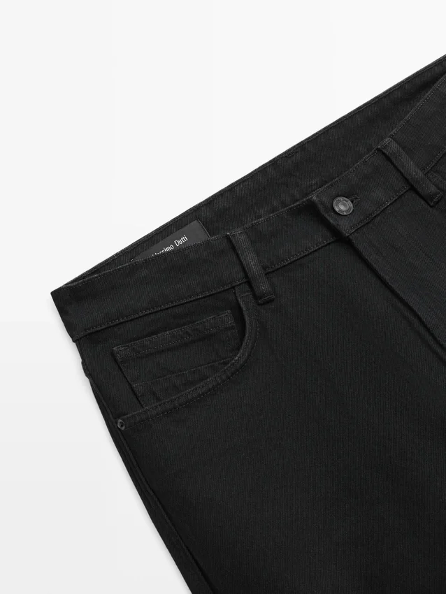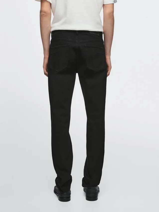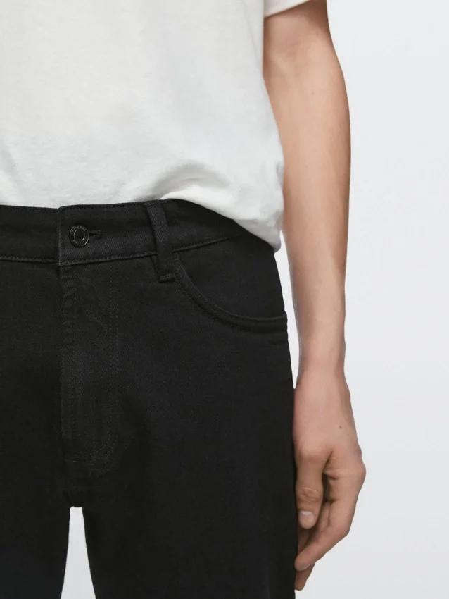 Slim Fit Jeans: Deze pasvorm heeft een licht getailleerd silhouet, strak bij de taille en de pijpen. Ritssluiting aan de voorkant en knoopsluiting bovenaan. Vijf-zakkenontwerp.