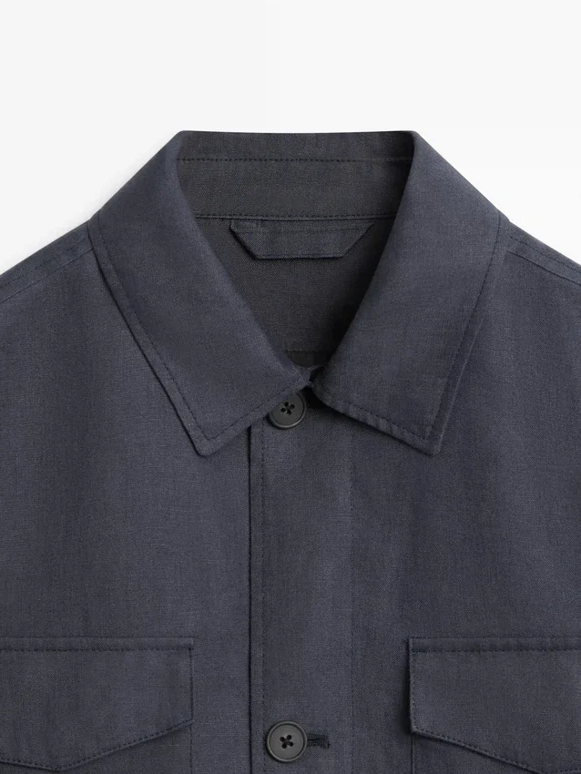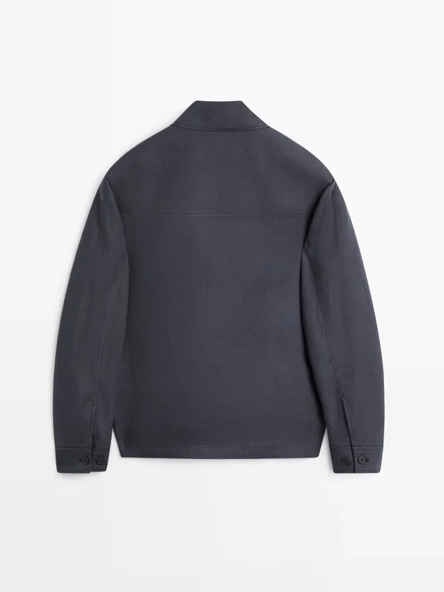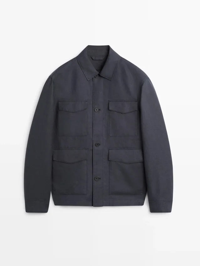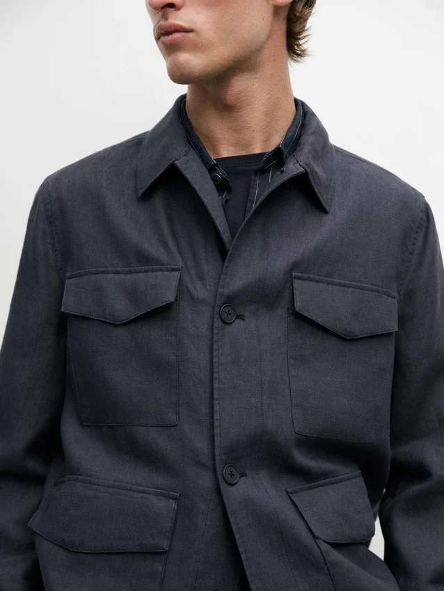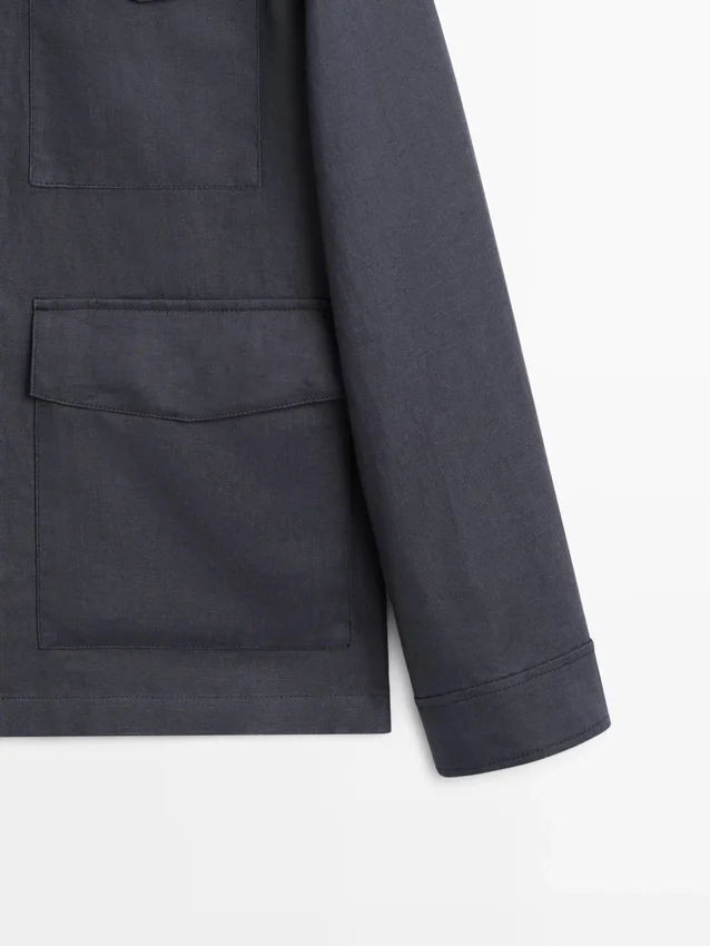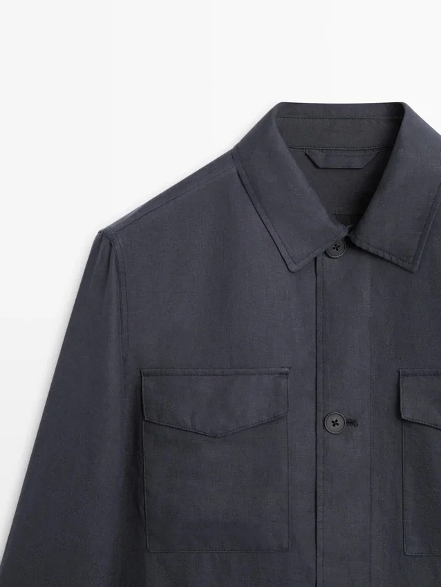 Jasje gemaakt van 100% linnen. Lange mouwen met knoopsluiting aan de manchetten. Overhemdkraag. Knoopsluiting aan de voorkant. Vier opgestikte zakken met klepjes. Fijne, lichtgewicht stof.