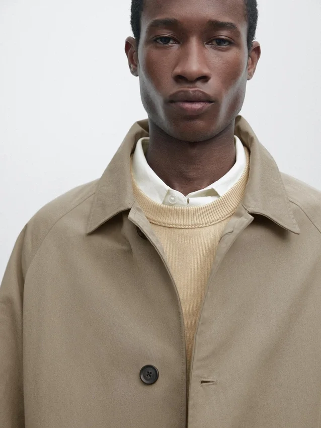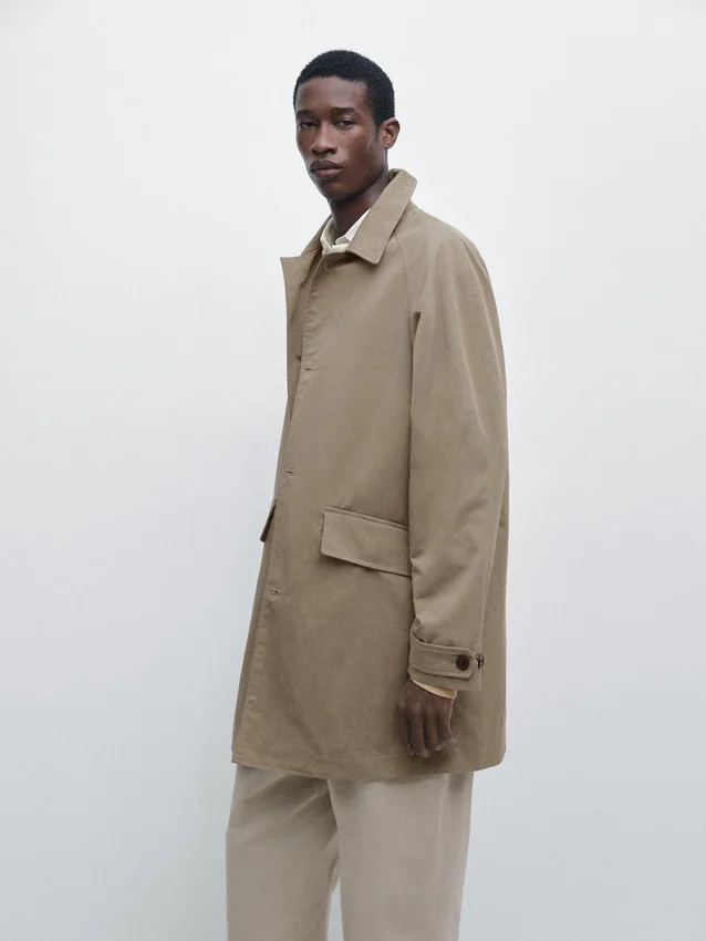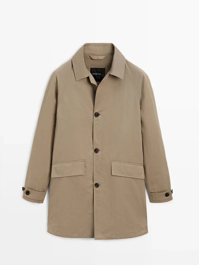 Overhemdkraag. Lange mouwen. Knoopsluiting aan de voorkant. Twee zakken met klep.