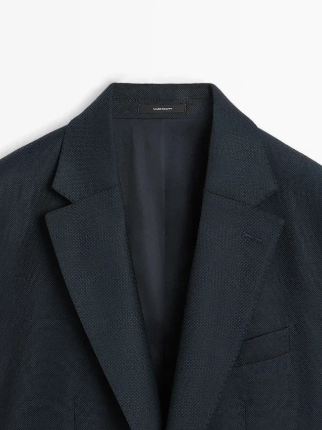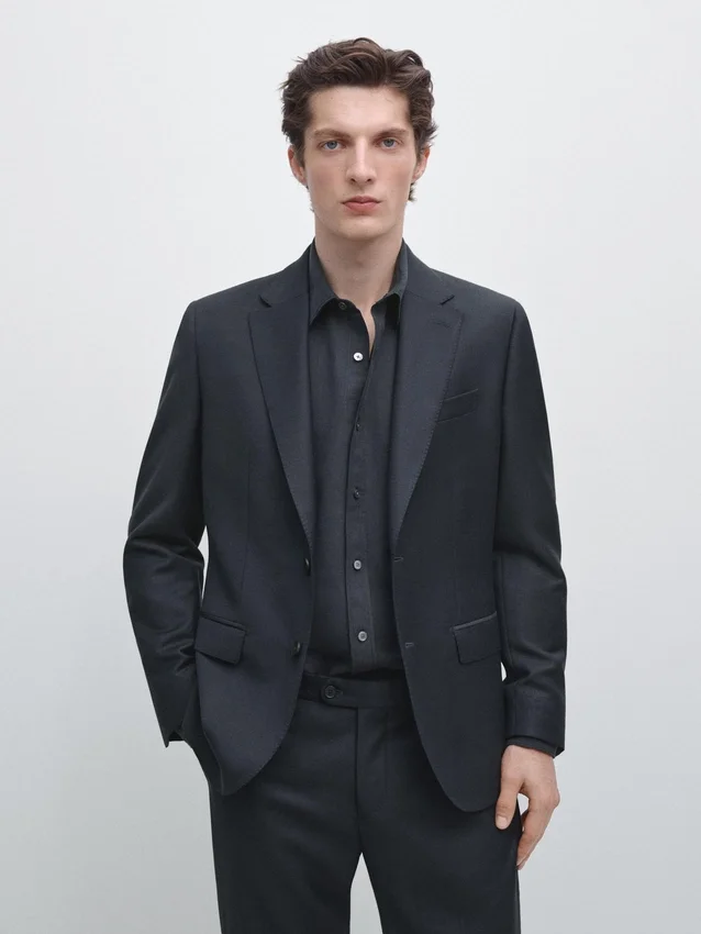 Blazer met textuur van 100% wol. Revers met knoopsgat. Lange mouwen met knoopsluiting aan de manchetten. Sluiting met twee knopen. Twee klepzakken. Steekzak op de borst. Stiksels. Cool Wool: lichtgewicht, ademende en kreukbestendige stof. Dit kledingstuk maakt deel uit van een Kostuum.